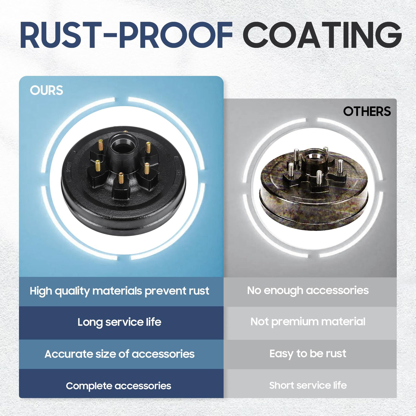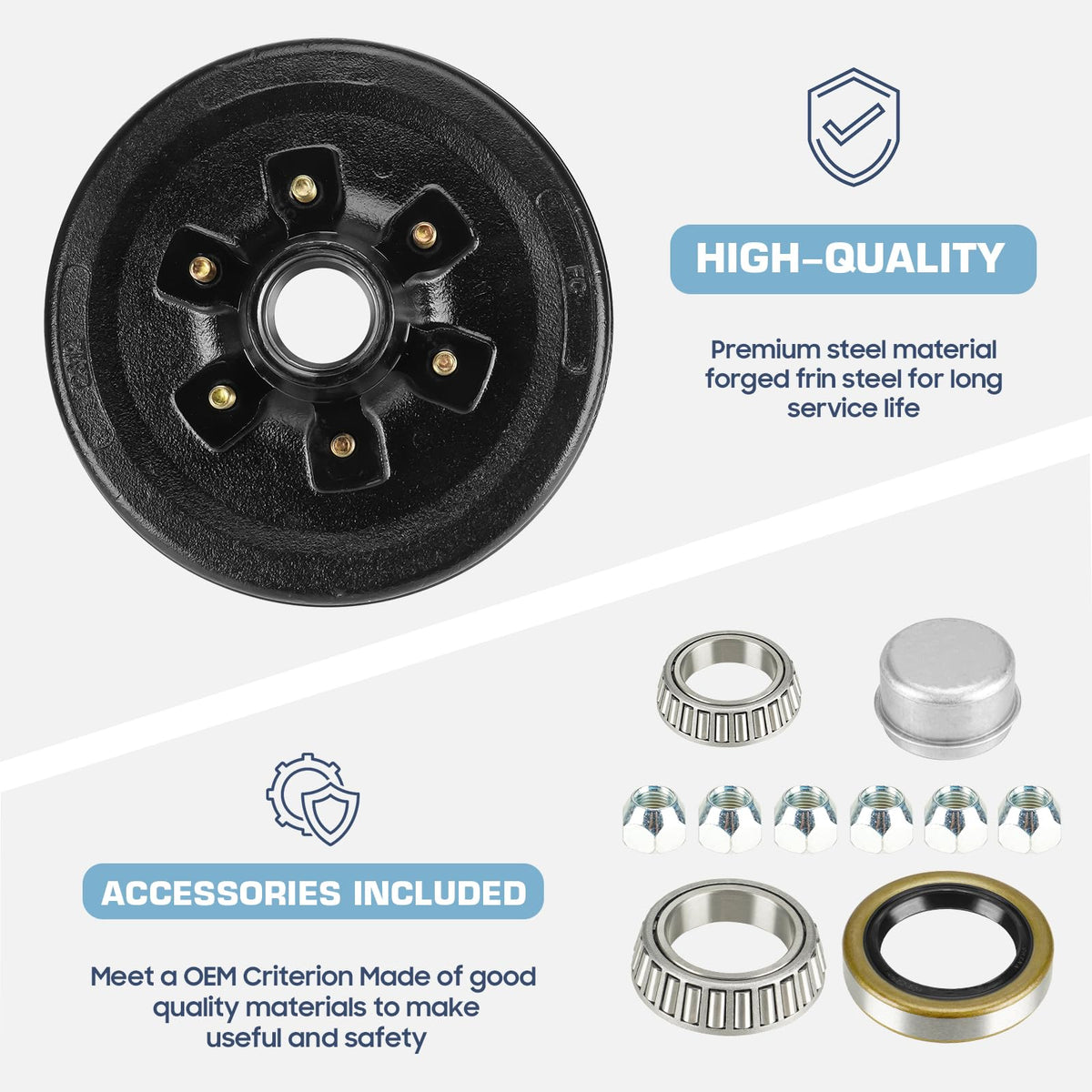 Trailer Brake Drum Kit, 6-Hole, 5.5'' Bolt Circle Brake Drum for 5200 lb, 6000 lb Axles, Replacement Brake Hub Drum Assembly for