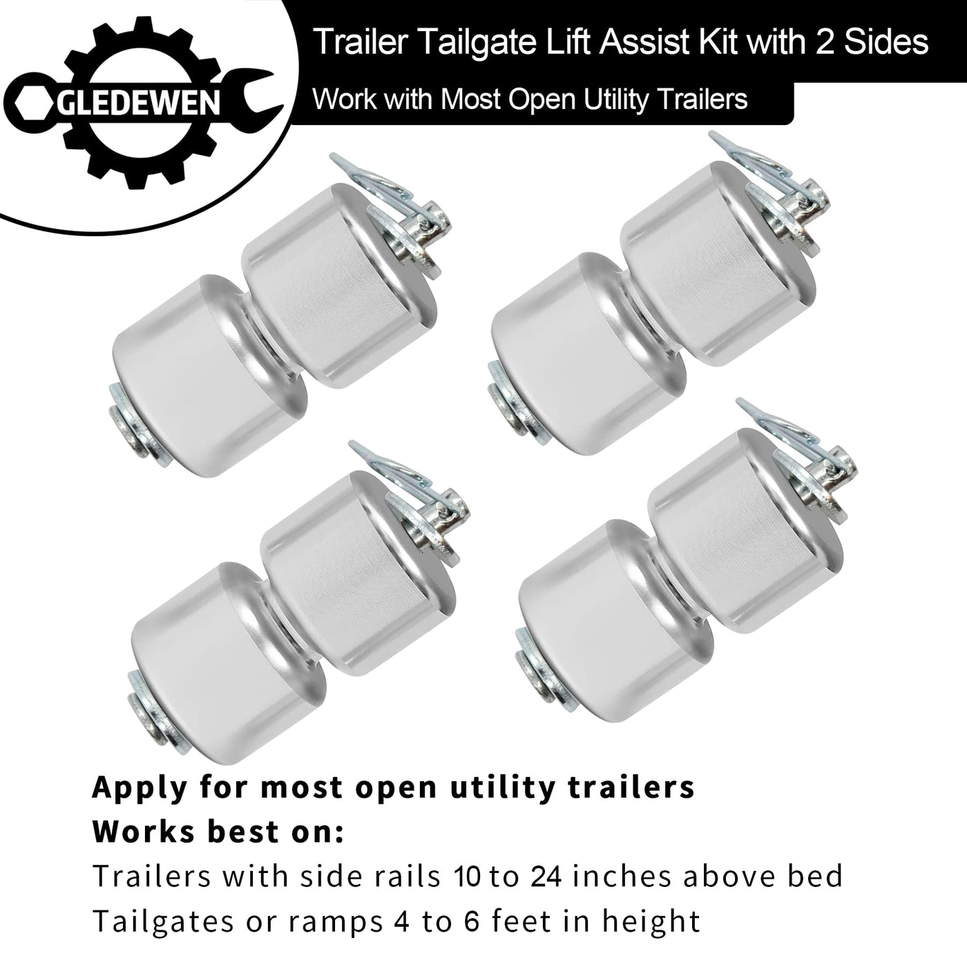 Trailer Tailgate Lift Assist Kit with 2 Sides (Aluminum Alloy Rollers), Compatible with Open Utility Trailer Tailgate and Ramp,