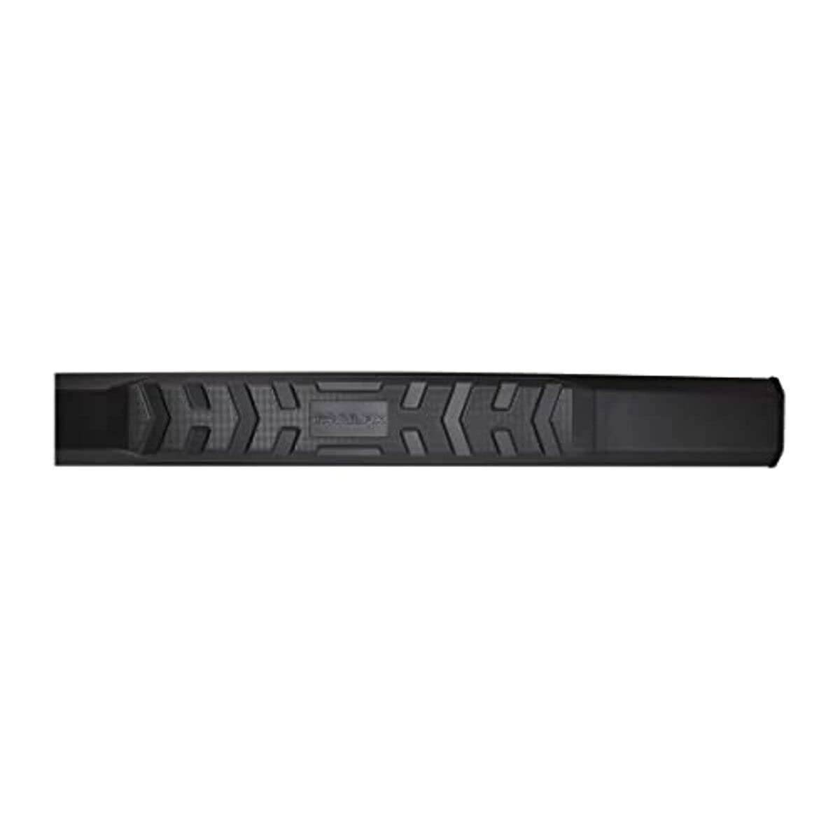 Q: What material is used in the construction of these step bars?A: These step bars are made from corrosion-resistant extruded aluminum, ensuring durability and longevity, with a stylish light textured black powder coat finish.
