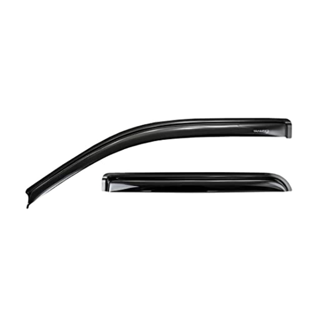 Q: What material are the Trailfx Rain Guard Tape On Window Vent Visors made from?A: These vent visors are constructed from high-quality polycarbonate material, providing durability and resistance against the elements while maintaining a sleek appearance.