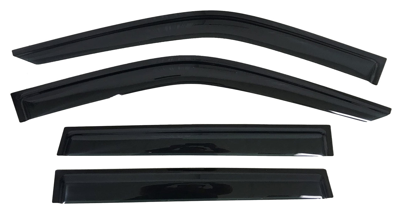 Q: What benefits do the rain guards provide?A: These rain guards allow you to keep your windows slightly open for fresh air circulation while reducing fogging and wind noise. They are crafted from dark smoke tinted acrylic for a sleek appearance.