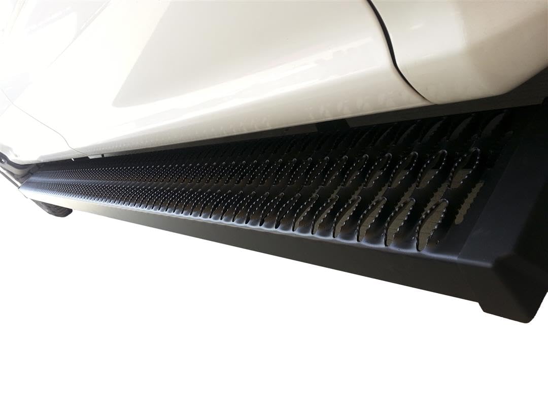 Q: How wide is the stepping area on the TRAILFX Running Board?A: The stepping area is 6.5 inches wide and features an aggressive grated surface designed to provide maximum footing in all weather conditions.