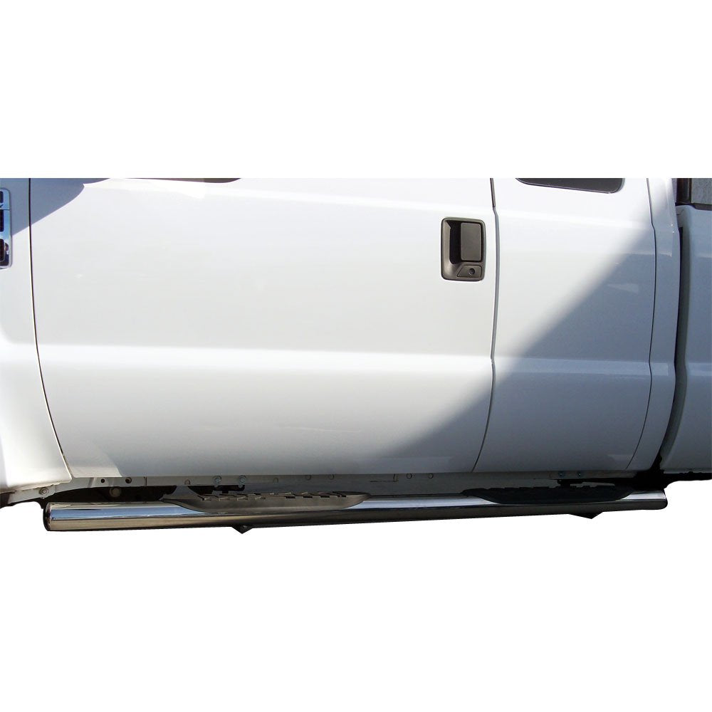Q: What is the material used for the Trailfx Trail FX A7016S Nerf Bar?A: The Trailfx Trail FX A7016S Nerf Bar is made from polished stainless steel, providing durability and a sleek appearance.