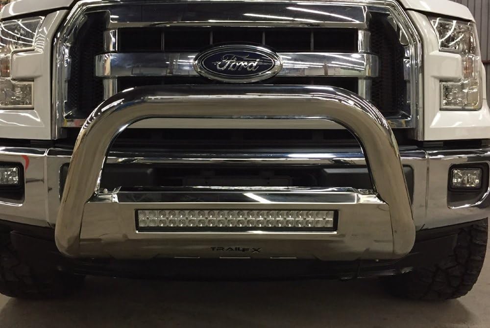 Q: What vehicles is the Trailfx Trail FX B1604S Bull Bar compatible with?A: The Trailfx Trail FX B1604S Bull Bar is designed to fit a variety of trucks and SUVs, providing a custom fit for enhanced style and protection. Please check the manufacturer's compatibility guide for specific vehicle models.