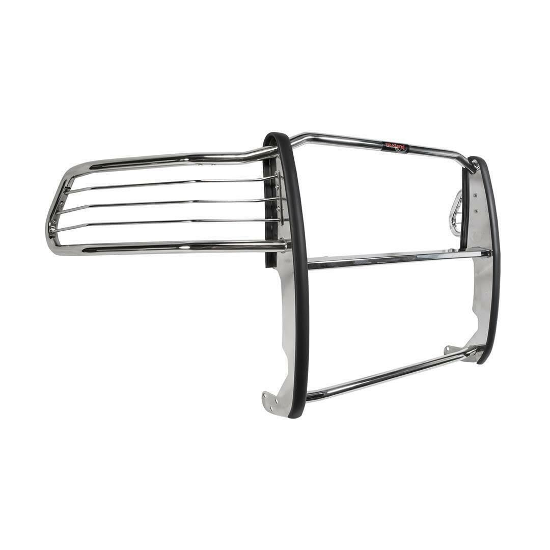 Q: What material is the Trailfx E0011S Grill Guard made from?A: The Trailfx E0011S Grill Guard is constructed from high-quality stainless steel, which provides durability and resistance against rust and corrosion.