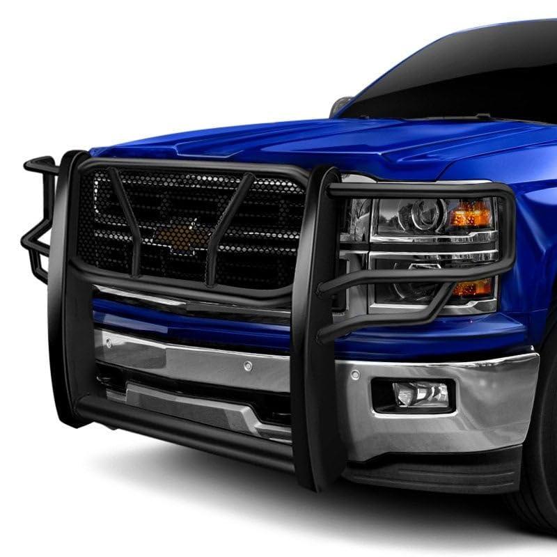 Q: How does the grille guard enhance vehicle protection?A: The Trailfx Trail FX E0509B Grille provides extreme protection for the front of your vehicle. It is built to absorb impacts from debris and wildlife, minimizing damage to your vehicle's grille and front-end components.