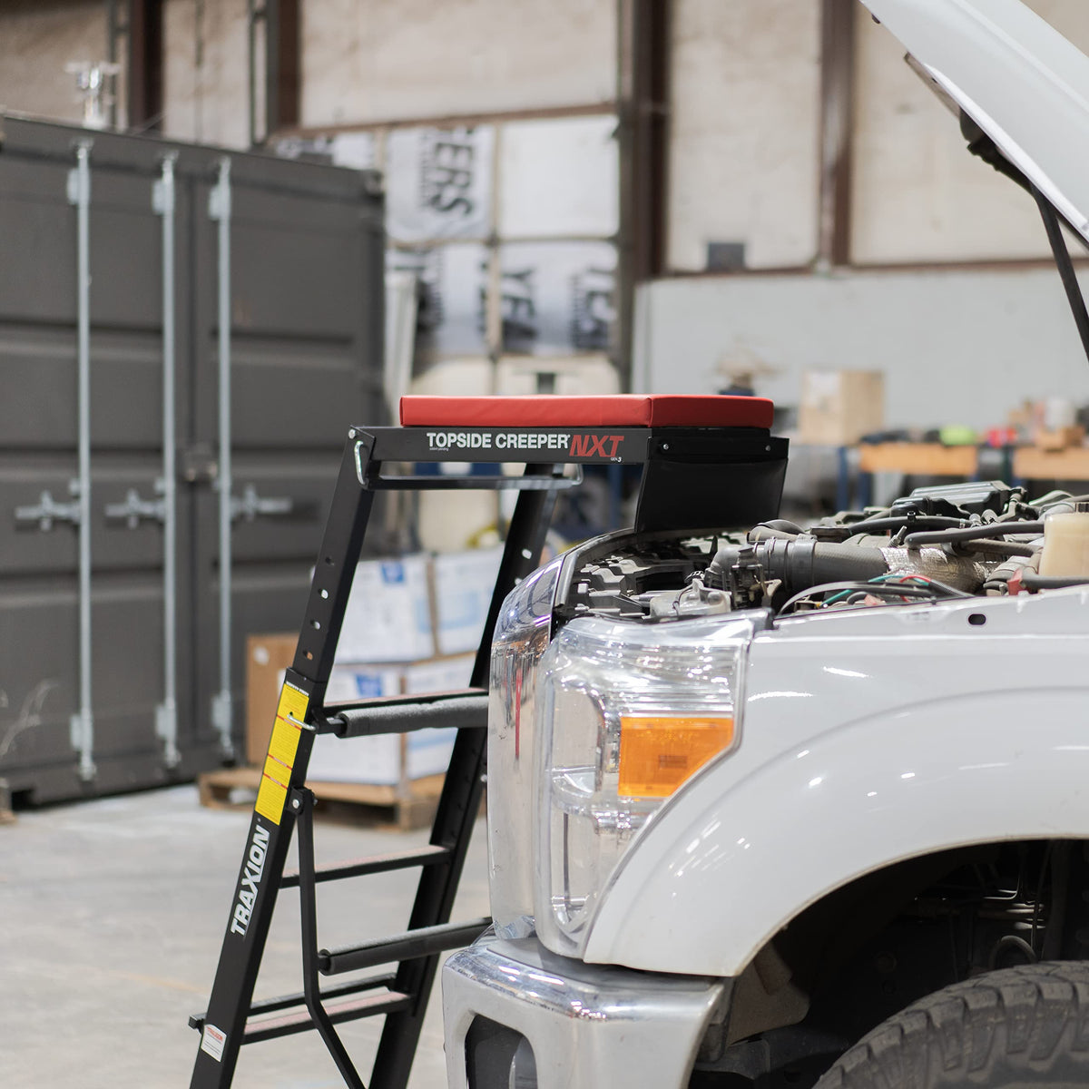 The Original Traxion Topside Creeper Nxt Is The Perfect Solution For Auto Technicians Who Want To Increase Productivity And Safety While Working From The Topside Of The Engine Compartment With Its Adjustable Padded Deck, This Creeper Provides A Comfortable And Stable Surface For The Mechanic To Rest On While Reaching Into The Engine Compartment The I-Base Design Of The Creeper Allows For Flexible Positioning Around The Vehicle, Making It Easier To Access Hard-To-Reach Areas The Topside Creeper Nxt Also Features Four Rolling Casters That Slide Easily Around The Shop Or Garage, Making It Easy To Move The Creeper From One Job To The Next Two Of The Casters Lock In Place To Ensure That The Unit Is Properly Positioned, Providing The User With The Safety And Leverage Needed To Get The Job Done Right When Not In Use, The Topside Creeper Nxt Conveniently Folds Flat For Easy And Compact Storage This Means That It Wont Take Up Valuable Space In Your Shop Or Garage, And It Will Be Ready To Use Whenever You Need It If You Want To Take Your Productivity To The Next Level, Consider Purchasing The Topside Creeper Bolt-On Tool Tray (Sold Separately) With This Tray, You Can Keep Your Tools And Equipment Close At Hand, Making It Even Easier To Get The Job Done Quickly And Efficiently Overall, The Original Traxion Topside Creeper Nxt Is An Essential Tool For Any Auto Technician Who Wants To Work More Efficiently And Safely Whether Youre A Professional Mechanic Or A Diy Enthusiast, This Creeper Will Help You Get The Job Done Right The First Time