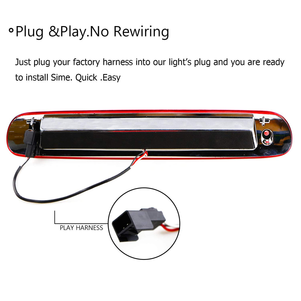 Tresound For 2007-2013 Chevy Chevrolet Silverado/Gmc Sierra 1500 2500Hd 3500Hd 3D Led Bar 3Rd Third Tail Brake Light Rear Cargo Lamp High Mount Stop Light Electroplating Housing (Red)