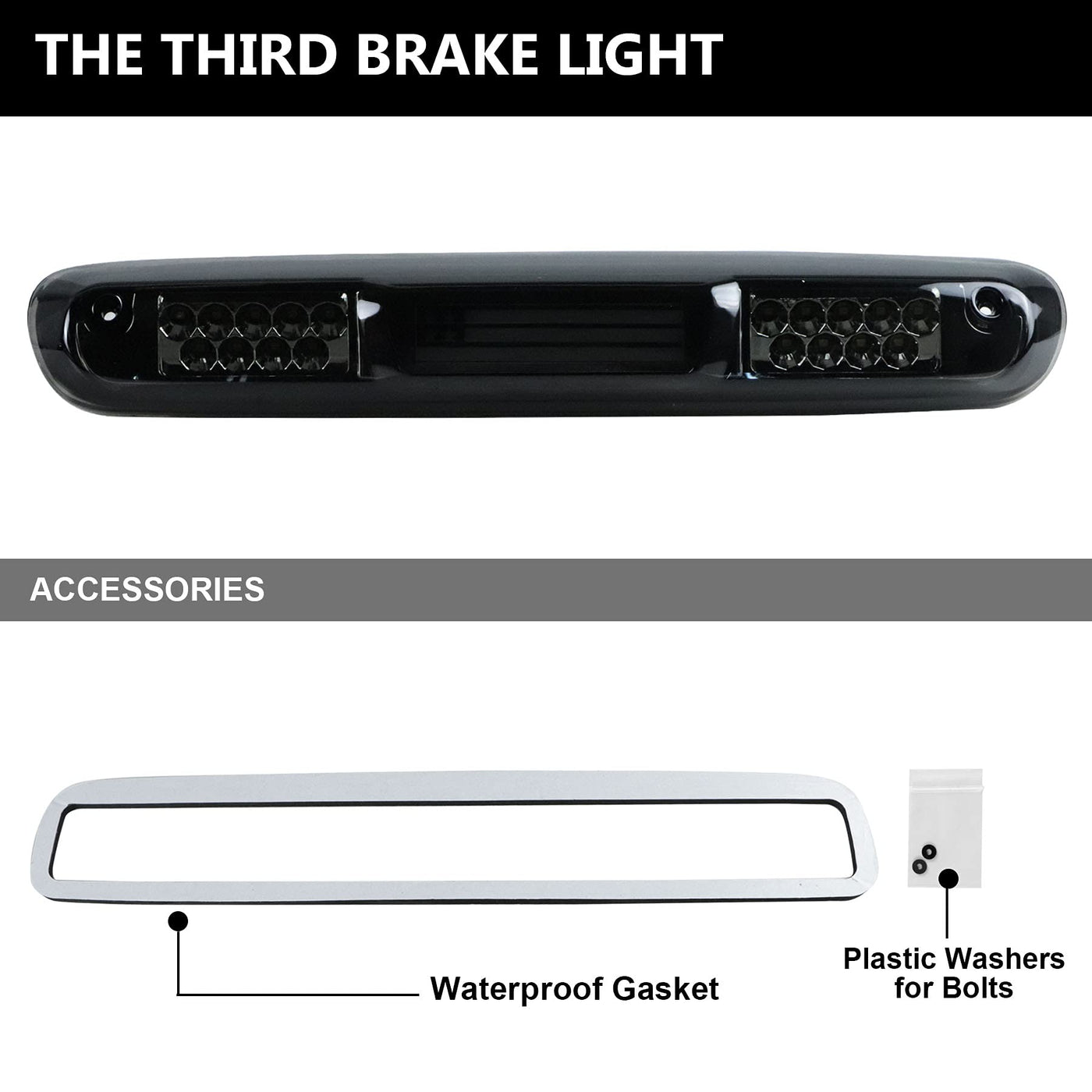 Q: What features does this high mount stop light offer?A: This high mount stop light features a cargo light function, a smoked lens design, and is constructed with waterproof materials to prevent leakage during rain or snow.
