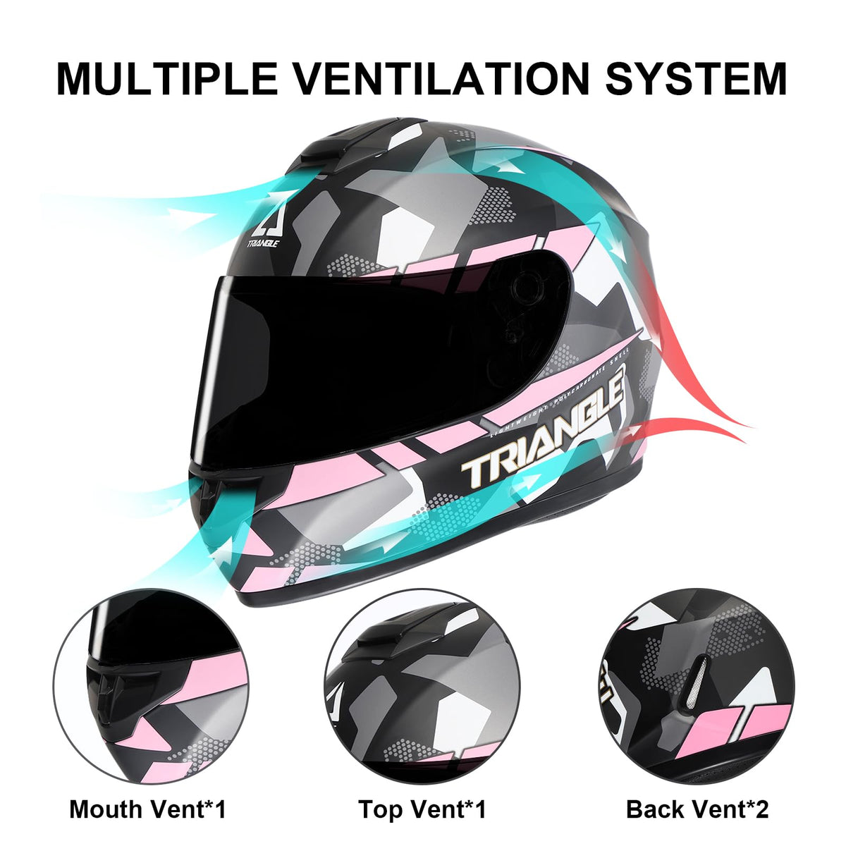 Triangle Motorcycle Helmets Full Face Helmet For Adult Men Women With Tinted And Clear Visor Dot Approved (Pink, Large)