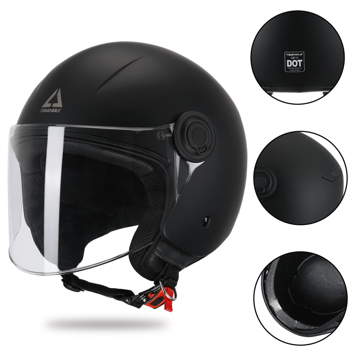 Triangle Open Face Motorcycle Helmet Retro 3/4 Helmets With Clear Visor For Men Women Dot Approved