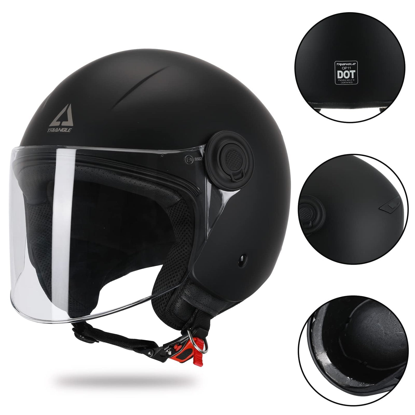 Q: Is the helmet suitable for both men and women?A: Yes, the TRIANGLE Open Face Motorcycle Helmet is designed for both men and women, offering a stylish and functional option for all riders.