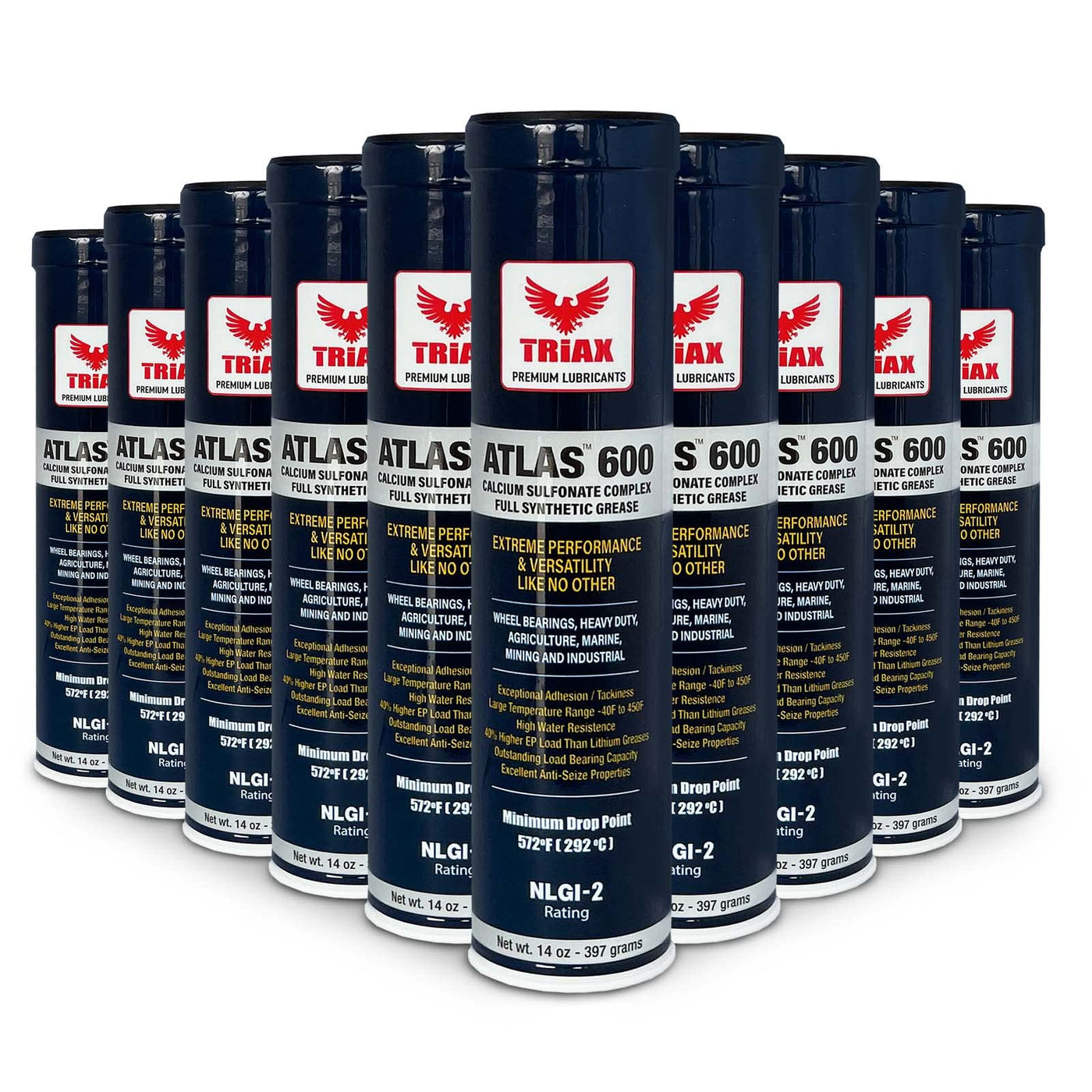 Triax Atlas 600 - Full Synthetic Grease - Ultra Duty - All 5Th Wheel, Bearings, Joints, Pivots, Bolts - Super Adhesive - Marine - Wide Temp Range -40 F To 450 F - 14 Ounce Cartridge (10 Tube Pack)