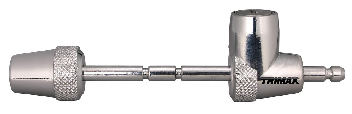 Q: What materials are used in the construction of the TRIMAX TC123 lock?A: The TRIMAX TC123 Universal Coupler Lock is made from durable stainless steel, which ensures longevity and resistance to rust and corrosion, ideal for outdoor use.