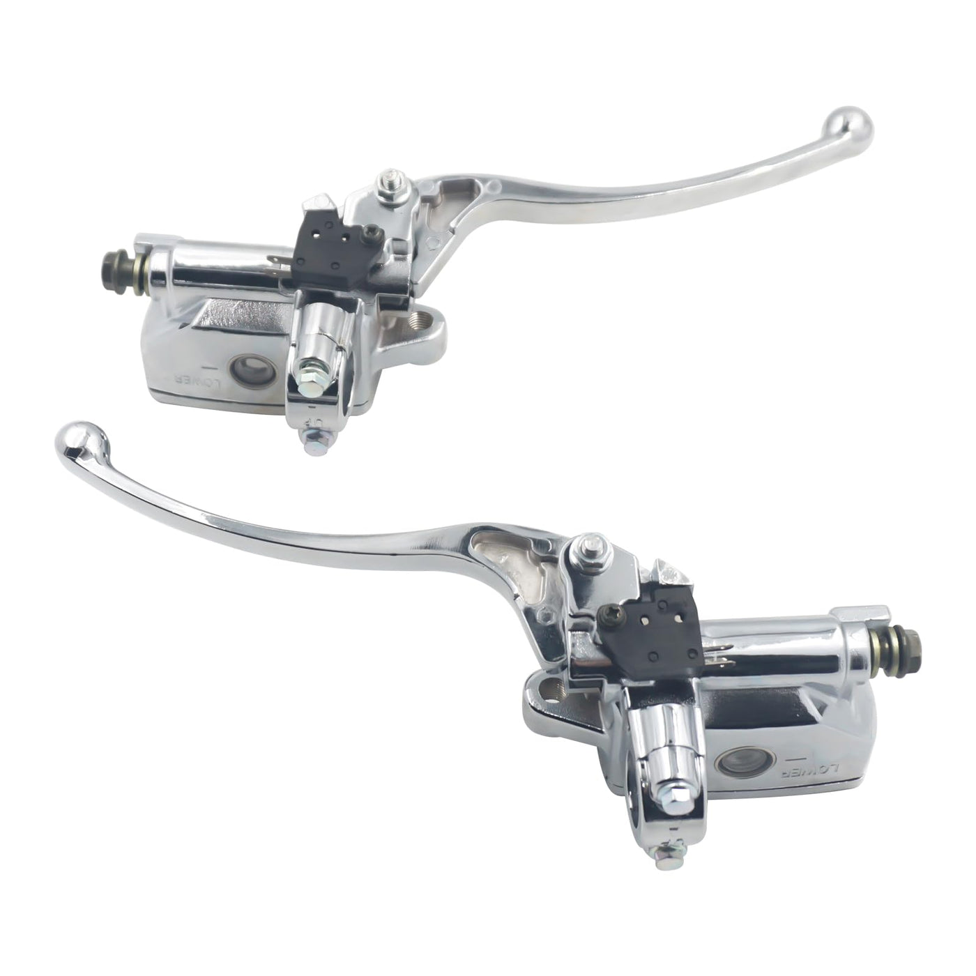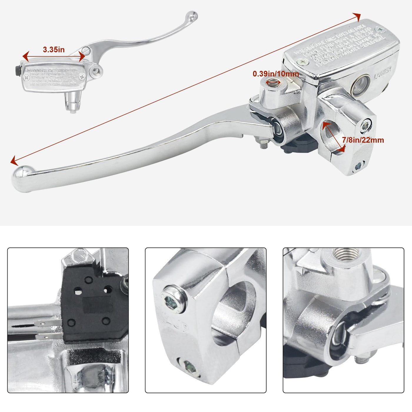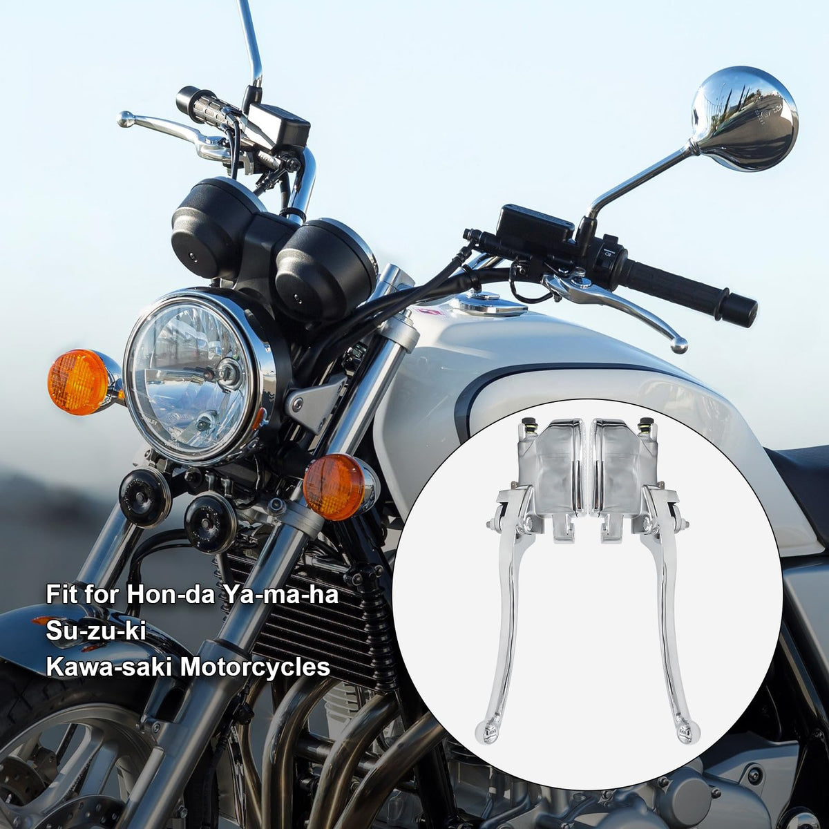 Specification: Application: 7/8'' handlebar, with lever and brake light switch Piston Bore: 14mm Banjo Bolt: 10 x1.25mm Type: Left & Right Size: 7/8 inch (22mm) Handlebars Color: Silver Package Includes: 1 x Left Motorcycle Brake Clutch Master Cylinder 1 x Right Motorcycle Brake Clutch Master Cylinder Fitment: Most Motorcycles with 7/8 inches (22mm) Hndlebar Master Cylinder: Replacement for Hon-da Motorcycles with 7/8 inch (22mm) Brake Handlebars Replacement for Ya-ma-ha Motorcycles with 7/8 inch (22mm) Brake Handlebars Replacement for Su-zu-ki Motorcycles with 7/8 inch (22mm) Brake Handlebars Replacement for Kawa-saki Motorcycles with 7/8 inch (22mm) Brake Handlebars