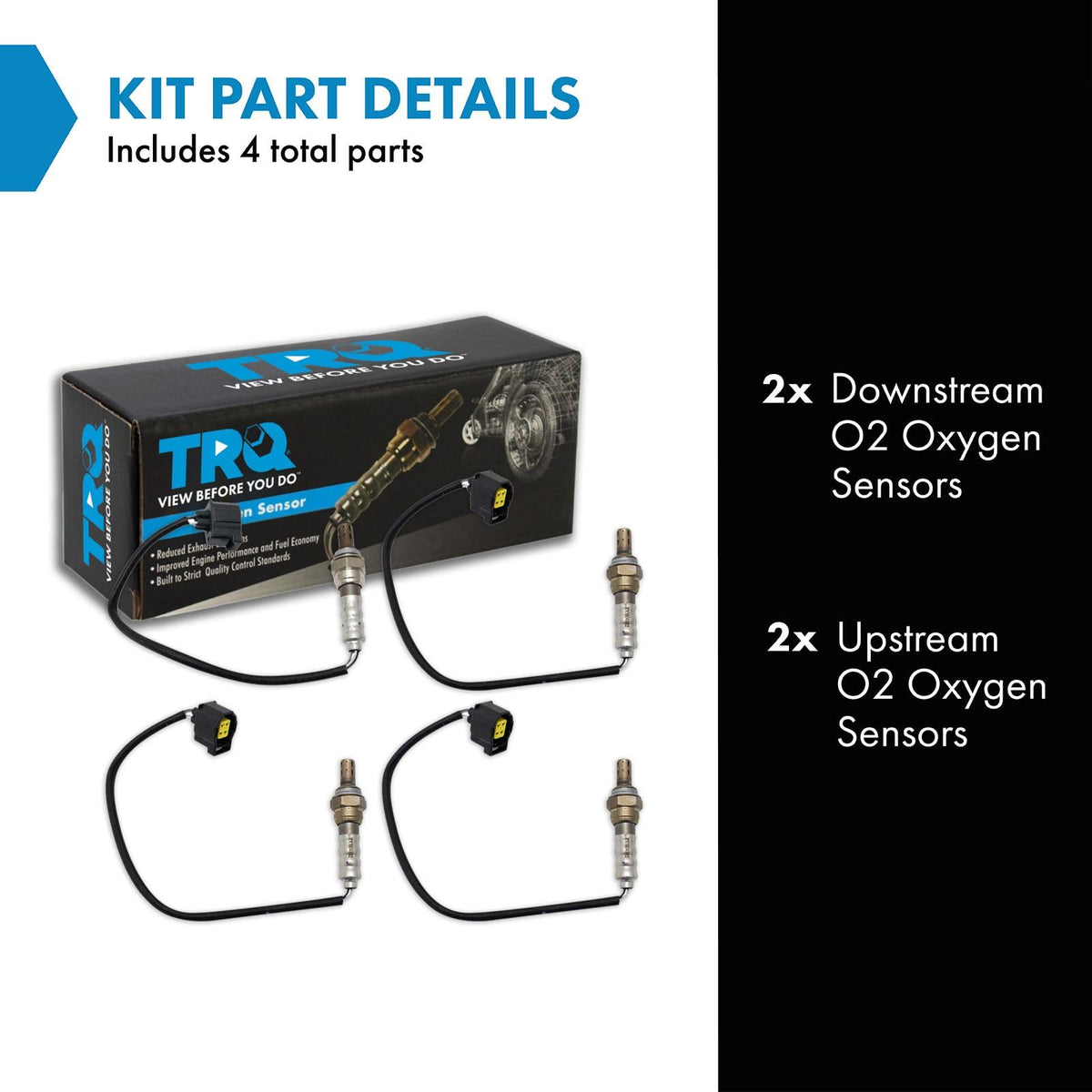 4 Piece O2 Oxygen Sensor SetKit Includes(2) Downstream O2 Oxygen Sensors(2) Upstream O2 Oxygen SensorsFitmentCompatible with: 2012-17 Jeep Wrangler V6 3.6LCompatible with: 2014-17 Jeep Grand Cherokee V6 3.6LCompatible with: 2017-23 Chrysler Pacifica Van V6 3.6L Upstream & DownstreamCompatible with: 2005-06 Dodge Ram 1500 Truck V6 3.7LCompatible with: 2005-06 Dodge Ram 1500 Truck V8 5.7LCompatible with: 2015-17 Chrysler 200 V6 3.6L Upstream & DownstreamCompatible with: 2005-06 Jeep Grand Cherokee V6 3.7LCompatible with: 2005-06 Jeep Grand Cherokee V8 5.7LCompatible with: 2005-06 Jeep Liberty V6 3.7LCompatible with: 2015-16 Chrysler Town & Country V6 3.6L Upstream & DownstreamCompatible with: 2014-15 Dodge Durango V6 3.6LCompatible with: 2015-16 Dodge Challenger V8 5.7L Upstream & DownstreamCompatible with: 2018 Jeep Wrangler JK V6 3.6LCompatible with: 2006 Jeep Grand Cherokee V8 6.1LCompatible with: 2005 Dodge Ram 2500 Truck V8 5.7LCompatible with: 2006 Dodge Charger V8 5.7L Upstream & DownstreamCompatible with: 2006 Jeep Commander V6 3.7LCompatible with: 2006 Jeep Commander V8 5.7LCompatible with: 2020-23 Chrysler Voyager V6 3.6L Upstream & DownstreamCompatible with: 2006 Dodge Durango V8 5.7LCompatible with: 2015 Chrysler 300 V6 3.6L Upstream & DownstreamCompatible with: 2005 Dodge Ram 3500 Truck V8 5.7LCompatible with: 2006 Dodge Magnum V8 5.7LProduct AttributesQuantity: 4 PieceProduct Features Application Specific Design: No modifications and pre-calibrated Isotatic-pressed and plasma-sprayed for extended service life Double-Layered 310S Stainless Steel: Additional protection from moisture and debris Restored Engine Performance: Improved fuel economy and lower emissionsItem DetailsTRQ oxygen sensors are manufactured to precise specifications using premium raw materials to optimize your vehicles emission system. Each sensor is isostatically-pressed for improved strength and durability, and plasma-sprayed to improve sensitivity and prolong the service life of the sensors. Oxygen sensors wear out over time and should be replaced every 60,000 miles to prevent poor engine performance. TRQ recommends replacing the oxygen sensors in sets to optimize fuel economy and reduce overall emissions. All products are fit and road-tested in our Massachusetts R&D facility to ensure we deliver on our promise of Trusted Reliable Quality.Reference NumbersACDelco: 213-2965, 213-2969, 213-3925Bosch: 13610, 13664, 13669, 13670, 13671, 13711, 13714, 13718, 13877, 15301, 15303, 15304, 15305, 15307, 15469, 15504, 15506, 15510, 15511, 18125, F00E260991Chrysler: 05149169AA, 05149170AA, 05149171AA, 05149180AA, 05149283AA, 5033-200AA, 5033500AA, 5149-171AA, 5149169AA, 5149170AA, 5149180AA, 56028994AA, 56028994AB, 56028996AA, 56029049AA, 56029112AA, 56031110AA, 56041698AA, 56041702AA, 56041846AA, 56041847AA, 56041887AA, 56041944AA, 56041950AA, 56041951AA, 56041952AA, 68021056AA, DS56031110AADelphi: ES10596, ES10917, ES11003, ES20093, ES20206, ES20208, ES20210, ES20228DENSO: 234-4030, 234-4217, 234-4228, 234-4229, 234-4230, 234-4232, 234-4417, 234-4418, 234-4545, 234-4546, 234-4547, 234-4553, 234-4554, 234-4559, 234-4560, 234-4586, 234-4587, 234-4593, 234-4594, 234-4770, 234-4771, 234-4772, 234-4943, 234-4983Dodge: 56029112AA, 56031110AA, 56041702AAJeep: 56041846AA, 56041847AA, 56041950AA, 56041951AA, 56041952AAMopar: 56028992AA, 56028994AANiehoff: FE80429, FE80562, FE80568, FE80570, FE80574, FE80770, FE80789, FE8760, FE8814, FE8816, FE8830, FE8831, FE8833, FE8969Omnicraft: QDY1, QDY24, QDY6OMNIPARTS: 19060390, 19060392Standard Motor Products: SG1381, SG1387, SG1389, SG1393, SG1589, SG1604, SG1849, SG1852, SG1853, SG659, SG663, SG717, SG719, SG733, SG734, SG736, SG867, SG871VAICO: V10-76-0125, V30-76-0048VEMO: V10-76-0125, V10-76-0142, V30-76-0048Walker Products: 250-24253, 250-24345, 250-24680Wells: SU3264, SU3266, SU3269, SU3283, SU3286, SU3287, SU3295, SU3297, SU3298, SU3337, SU3338, SU6887, SU6893