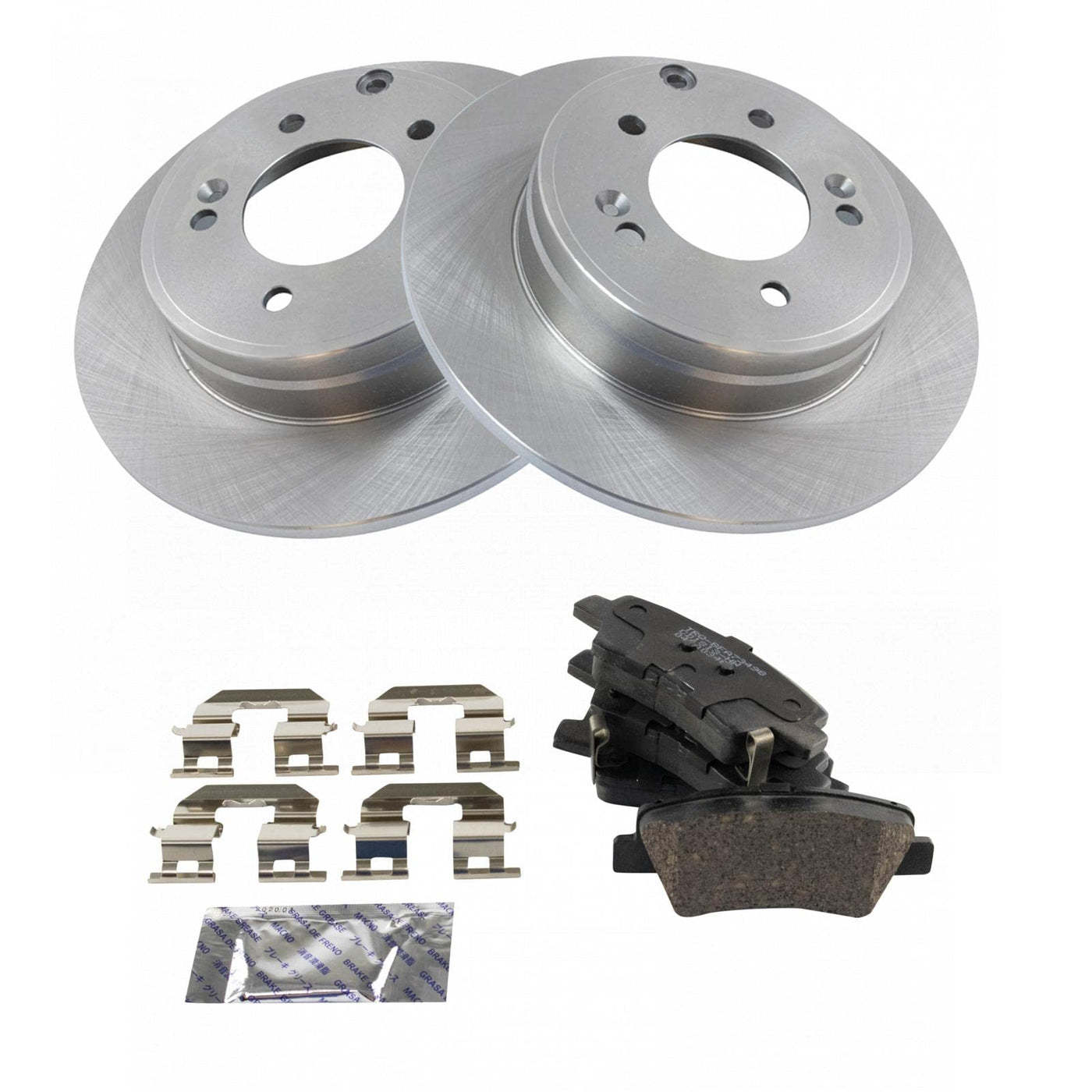 Ceramic Brake Pad & Rotor KitKit Includes(1) Rear Ceramic Brake Pad Set(2) Rear Brake RotorsFitmentCompatible with: 2016-19 Hyundai Sonata Sport Rear with Power Parking BrakeCompatible with: 2016-17 Hyundai Sonata Hybrid Limited Rear with Power Parking BrakeCompatible with: 2016-17 Hyundai Sonata Plug-In Hybrid Rear with Power Parking BrakeCompatible with: 2018-19 Hyundai Sonata SE Rear with Power Parking BrakeCompatible with: 2016 Hyundai Sonata SE Rear with Power Parking BrakeCompatible with: 2016 Hyundai Sonata Hybrid Rear with Power Parking BrakeCompatible with: 2016 Hyundai Sonata Eco Rear with Power Parking BrakeCompatible with: 2017 Hyundai Sonata Hybrid SE Rear with Power Parking BrakeCompatible with: 2016 Kia Optima LX Rear with Power Parking BrakeCompatible with: 2018 Hyundai Sonata Eco Rear with Power Parking BrakeCompatible with: 2018 Kia Optima S Rear with Power Parking BrakeProduct AttributesRear Brake Rotor Diameter: 11.18 in. (284mm)Wheel Lug Count: 5 LugBrake Pad Friction Material: CeramicBrake Pad Bonding Type: Premium PosiRear Brake Rotor Venting Type: SolidProduct Features Positive Molded - Less dust resulting in clean wheels G3000 Casting Alloy - Reduced noise and improved wear resistance Application Specific Design - Extended service life, no modificationsItem DetailsTRQ brake kits are designed to restore your brake system to like-new performance. TRQ brake pads are positive molded, thermal scorched, chamfered, and utilize a multi-layer shim for enhanced performance and service life. TRQ rotors have a non-directional finish that reduces the break-in period for new rotors as well as reducing vibrations throughout the rotors lifecycle. All products are fit and road-tested in our Massachusetts R&D facility to ensure we deliver on our promise of Trusted Reliable Quality.Reference NumbersAimco: 31424Bendix: PRT5846DuraGo: BR31424Hollander: 533-50114, 533-50223, 533-50292Hyundai: 583022VA35, 58302A5A33, 58302D4A50, 58302E6A50, 58302G3A30, 58302G3A50, 58302G3A60Kia: 58302A4B50, 58302A8A50, 58302B2A20, 58302D5A50, 58302E4A50Raybestos Brakes: 980420, 980420FZN, 980420P, 980420R, 980902, 980902FZN, 980902P, 980902R, EHT1828HWagner: BD126458