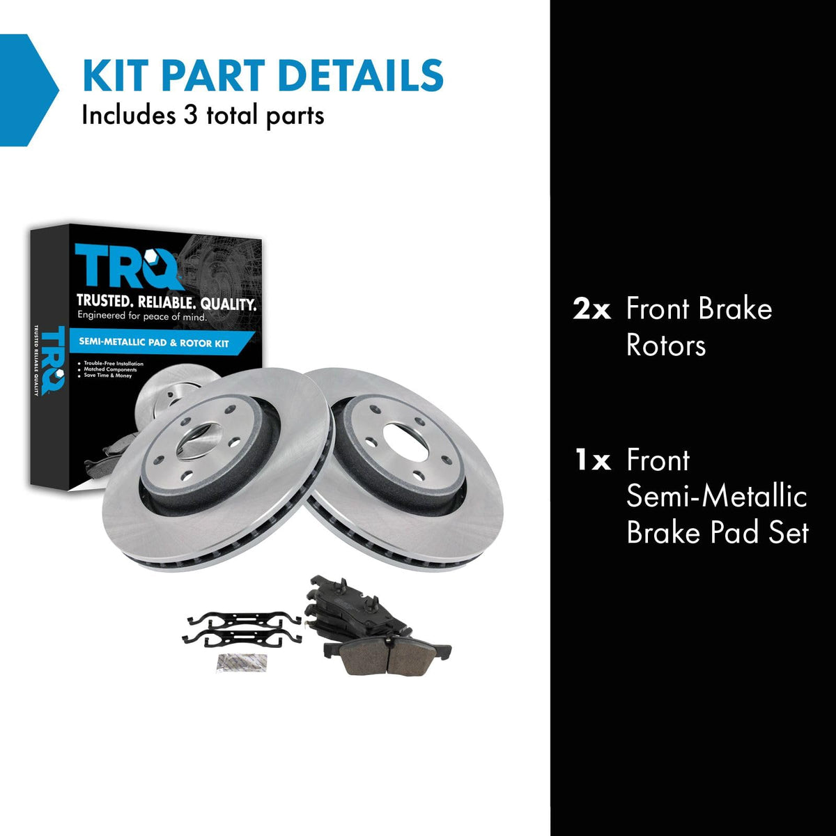 Trq Brake Pad & Rotor Kit Semi-Metallic Front Compatible With 2011-2016 Dodge Durango Jeep Grand Cherokee