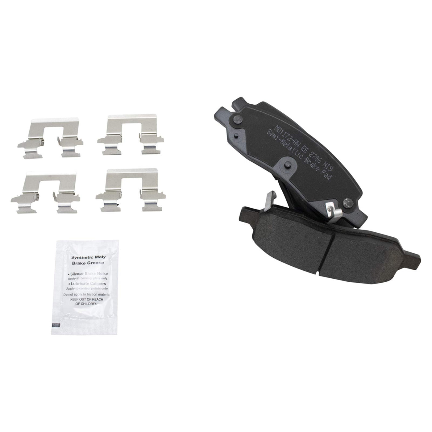 Semi-Metallic Brake Pad & Rotor KitKit Includes(1) Rear Semi-Metallic Brake Pad Set(2) Rear Brake RotorsFitmentCompatible with: 2006-11 Buick Lucerne RearCompatible with: 2006-11 Cadillac DTS Rear with RPO Code JL9 Power 4 Wheel ABS Disc BrakesProduct AttributesRear Brake Rotor Diameter: 11.46 in. (291mm)Wheel Lug Count: 5 LugBrake Pad Bonding Type: Premium PosiBrake Pad Friction Material: Semi-MetallicRear Brake Rotor Venting Type: SolidProduct Features Positive Molded - Less dust resulting in clean wheels G3000 Casting Alloy - Reduced noise and improved wear resistance Application Specific Design - Extended service life, no modificationsItem DetailsTRQ brake kits are designed to restore your brake system to like-new performance. TRQ brake pads are positive molded, thermal scorched, chamfered, and utilize a multi-layer shim for enhanced performance and service life. TRQ rotors have a non-directional finish that reduces the break-in period for new rotors as well as reducing vibrations throughout the rotors lifecycle. All products are fit and road-tested in our Massachusetts R&D facility to ensure we deliver on our promise of Trusted Reliable Quality.Reference NumbersAimco: 55127Autopart International: 1407-80374Bendix: PRT5740Buick: 15773987Cadillac: 15773987DuraGo: BR900276Raybestos Brakes: 580405, 580405FZN, 580405P, 580405R, EHT1172HWagner: BD180180