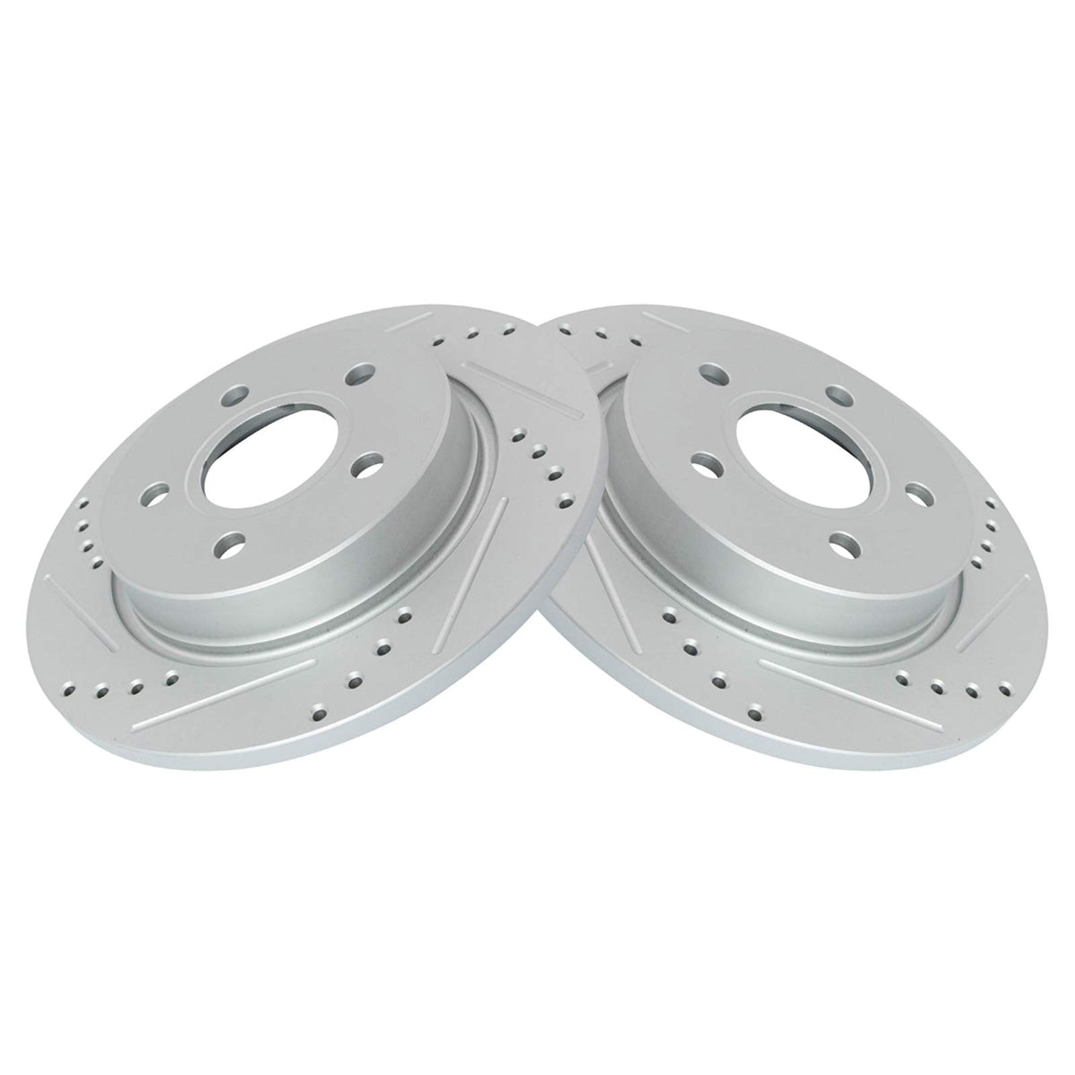 Trq Brake Rotors Set Performance Premium G-Coated Slotted X Drilled Rear Driver & Passenger Side Compatible With 2012-2018 Ford