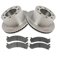 Ceramic Brake Pad & Rotor KitKit Includes(1) Rear Ceramic Brake Pad Set(2) Rear Brake RotorsFitmentCompatible with: 2001-06 Chevrolet Silverado 3500 Rear with Dual Rear Wheels DRWCompatible with: 2007-10 Chevrolet Silverado 3500 HD Rear with Dual Rear Wheels DRWCompatible with: 2001-06 GMC Sierra 3500 Rear with Dual Rear Wheels DRWCompatible with: 2007-10 GMC Sierra 3500 HD Rear with Dual Rear Wheels DRWCompatible with: 2007 Chevrolet Silverado 3500 Classic Rear with Dual Rear Wheels DRWCompatible with: 2007 GMC Sierra 3500 Classic Rear with Dual Rear Wheels DRWProduct AttributesRear Brake Rotor Diameter: 12.80 in. (325mm)Wheel Lug Count: 8 LugBrake Pad Friction Material: CeramicRear Brake Rotor Venting Type: VentedProduct Features Positive Molded - Less dust resulting in clean wheels G3000 Casting Alloy - Reduced noise and improved wear resistance Application Specific Design - Extended service life, no modificationsItem DetailsTRQ brake kits are designed to restore your brake system to like-new performance. TRQ brake pads are positive molded, thermal scorched, chamfered, and utilize a multi-layer shim for enhanced performance and service life. TRQ rotors have a non-directional finish that reduces the break-in period for new rotors as well as reducing vibrations throughout the rotors lifecycle. All products are fit and road-tested in our Massachusetts R&D facility to ensure we deliver on our promise of Trusted Reliable Quality.Reference NumbersAimco: 55075Bendix: PRT5339Chevrolet: 15886464, 18044346, 19133307, 25927114DuraGo: BR55075GMC: 15886464, 18044346, 19133307, 25927114Raybestos Brakes: 56992, 56992FZN, 56992P, 56992R, EHT909H, MGD909CH, SGD909CWagner: BD125778