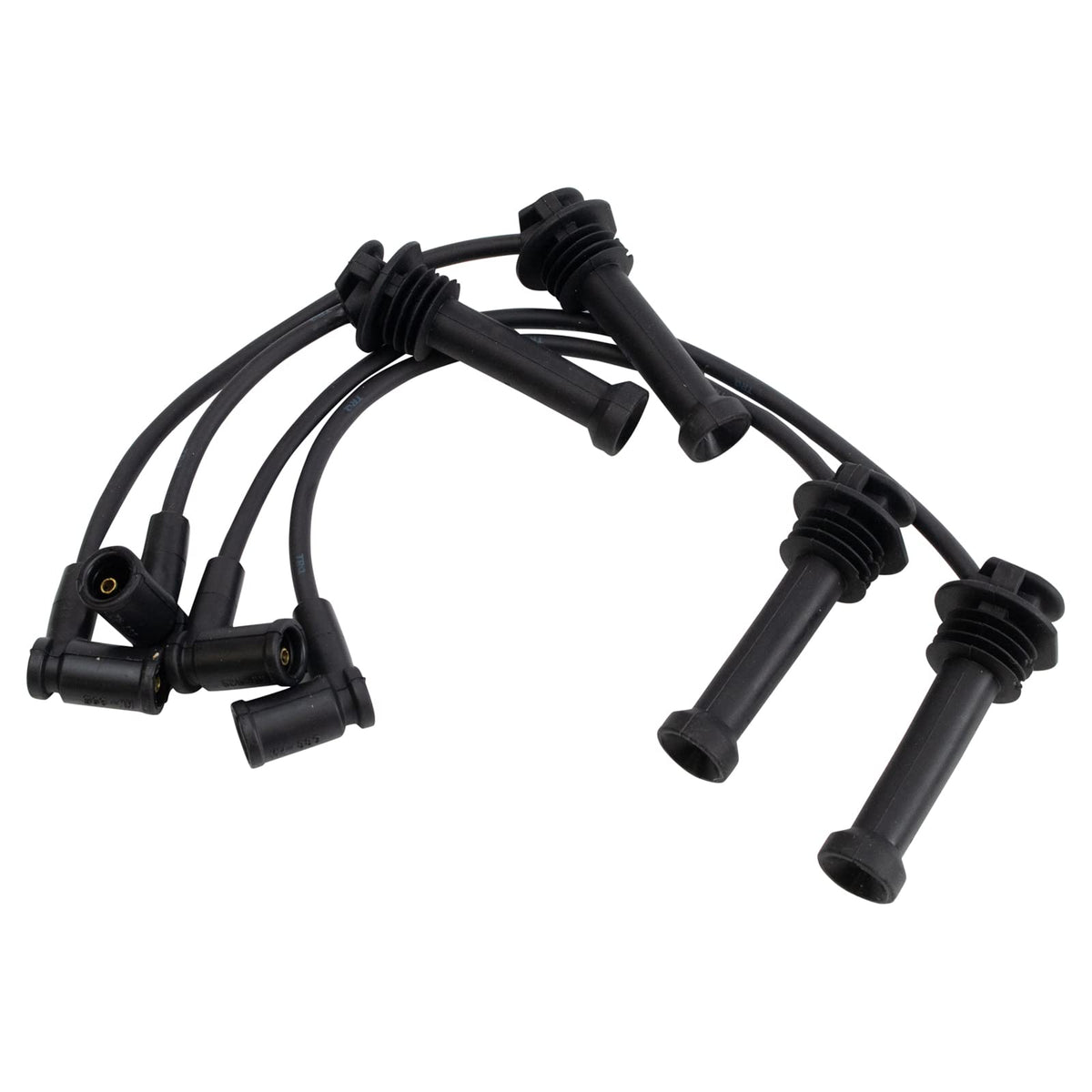 Spark Plug Wire SetFitmentCompatible with: 2000-04 Ford Focus L4 2.0L DOHCCompatible with: 2001-04 Ford Escape L4 2.0LCompatible with: 2001-04 Mazda Tribute L4 2.0LCompatible with: 1999-02 Mercury Cougar L4 2.0LCompatible with: 1999 Ford Contour L4 2.0L From 5/04/99 Production DateCompatible with: 2000 Ford Contour L4 2.0LCompatible with: 1999 Mercury Mystique L4 2.0L From 5/04/99 Production DateCompatible with: 2000 Mercury Mystique L4 2.0LProduct AttributesResistance: 1200 OhmsInsulation Outside Diameter: 8 mmInsulation Color: BlackWire Separators Included: NoInsulation Material: SiliconeUniversal Or Specific Fit: SpecificCore Material: Wire Wound Stainless SteelNoise Suppression Type: YesProduct Features Pre-Greased: Seal created to ensure a proper connection with spark plugs Noise Suppression: Minimized EMI and RFI interference with electronics Application Specific Design: No modifications requiredItem DetailsTRQ Wire Sets are precision engineered to keep your engine running like new. Wire Sets naturally wear out over time and should be replaced every 50,000 miles to keep your car running in peak performance, reduce emissions, and prevent any damage to your ECU or sensors. All products are fit and road-tested in our Massachusetts R&D facility to ensure we deliver on our promise of Trusted Reliable Quality.Reference NumbersACDelco: 16-844EAutolite: 97042Autopart International: 2500-79627Bosch: 09451BWD: CH8439Carquest: 35-4021DENSO: 671-4061Ford: XS2Z-12259-AA, XS2Z12259AAGP - Guaranteed Parts: 66584Motorcraft: WR5974, XS2Z12259AANAPA Mileage Plus: 700054Niehoff: 12-8439, 128439PRENCO: 35-87595PROConnect: 124012Standard Motor Products: 26465, 6465STI: 26465, 6465Walker Products: 924-2004