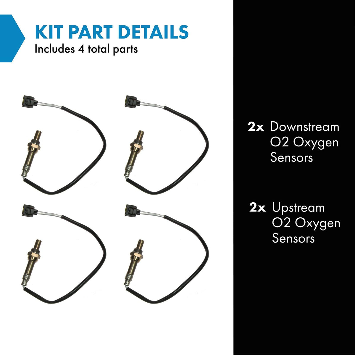 4 Piece O2 Oxygen Sensor SetKit Includes(2) Downstream O2 Oxygen Sensors(2) Upstream O2 Oxygen SensorsFitmentCompatible with: 2003 Dodge Ram 1500 Truck V8 5.9L Upstream & DownstreamProduct AttributesQuantity: 4 PieceProduct Features Application Specific Design: No modifications and pre-calibrated Isotatic-pressed and plasma-sprayed for extended service life Double-Layered 310S Stainless Steel: Additional protection from moisture and debris Restored Engine Performance: Improved fuel economy and lower emissionsItem DetailsTRQ oxygen sensors are manufactured to precise specifications using premium raw materials to optimize your vehicles emission system. Each sensor is isostatically-pressed for improved strength and durability, and plasma-sprayed to improve sensitivity and prolong the service life of the sensors. Oxygen sensors wear out over time and should be replaced every 60,000 miles to prevent poor engine performance. TRQ recommends replacing the oxygen sensors in sets to optimize fuel economy and reduce overall emissions. All products are fit and road-tested in our Massachusetts R&D facility to ensure we deliver on our promise of Trusted Reliable Quality.Reference NumbersACDelco: 213-2936Bosch: 13672, 13687, 13718, 15308Chrysler: 05139021AA, 5139-020AA, 5139-021AA, 5149005AA, 56028997AA, 56030100AA, 56030111AA, 5604-1845AA, 56041706AA, 56041845AB, 56041848AA, 56041943AA, 56041953AA, 56044598AA, DS56030100AADelphi: ES20089, ES20090, ES20092, ES20106DENSO: 234-4029, 234-4229, 234-4767, 234-4768, 234-4769Dodge: 5603-0100AA, 5603-0111AA, 56041706AA, DS56030100AAJeep: 56041953AAMitsubishi: M04557667Niehoff: FE80396, FE80571, FE80577, FE80771, FE8812, FE8815, FE8826, FE8827, FE8835, FE8853Omnicraft: QDY29Standard Motor Products: SG1390, SG1396, SG1590, SG1852, SG604, SG715, SG718, SG729, SG730, SG738, SG755Walker Products: 250-24259Wells: SU3261, SU3267, SU3268, SU3277, SU3278, SU3282, SU3296, SU6884, SU6885