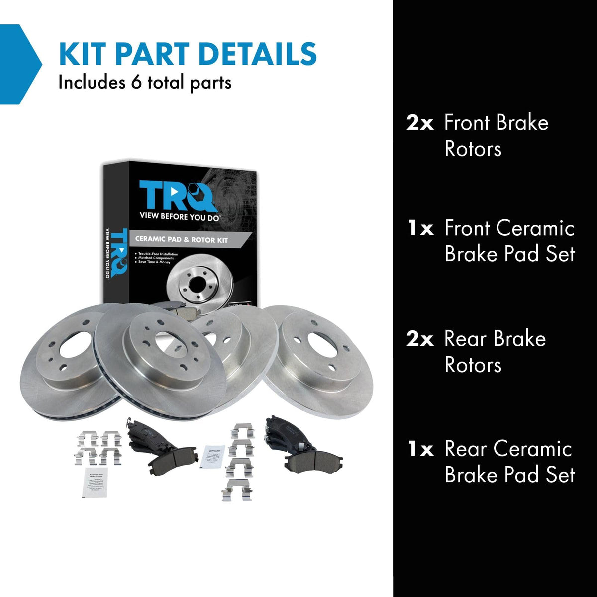 Trq Front And Rear Brake Pad & Rotor Kit Brake Pads Brake Rotor Ceramic Compatible With 1991-1992 Saturn Sc 1993-1998 Sc1 Sc2 19