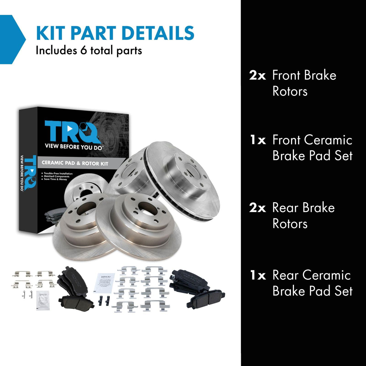Trq Front And Rear Brake Pad & Rotor Kit Brake Pads Brake Rotor Ceramic Compatible With 1998-2002 Subaru Forester 1999-2001 Impr