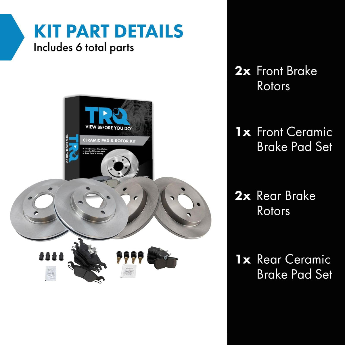 Trq Front And Rear Brake Pad & Rotor Kit Brake Pads Brake Rotor Ceramic Compatible With 2001-2004 Ford Focus