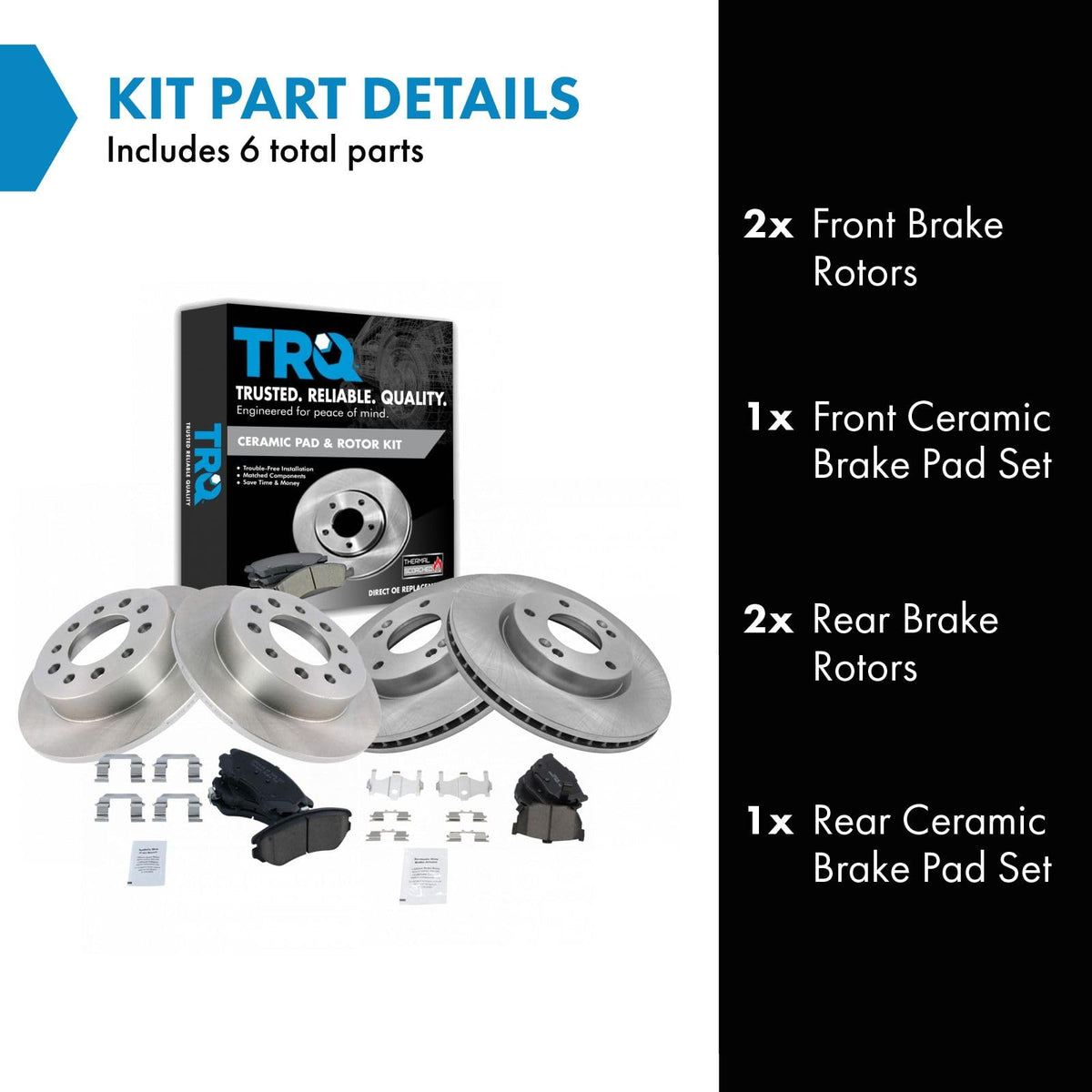 Trq Front And Rear Brake Pad & Rotor Kit Brake Pads Brake Rotor Ceramic Compatible With 2003-2008 Hyundai Tiburon