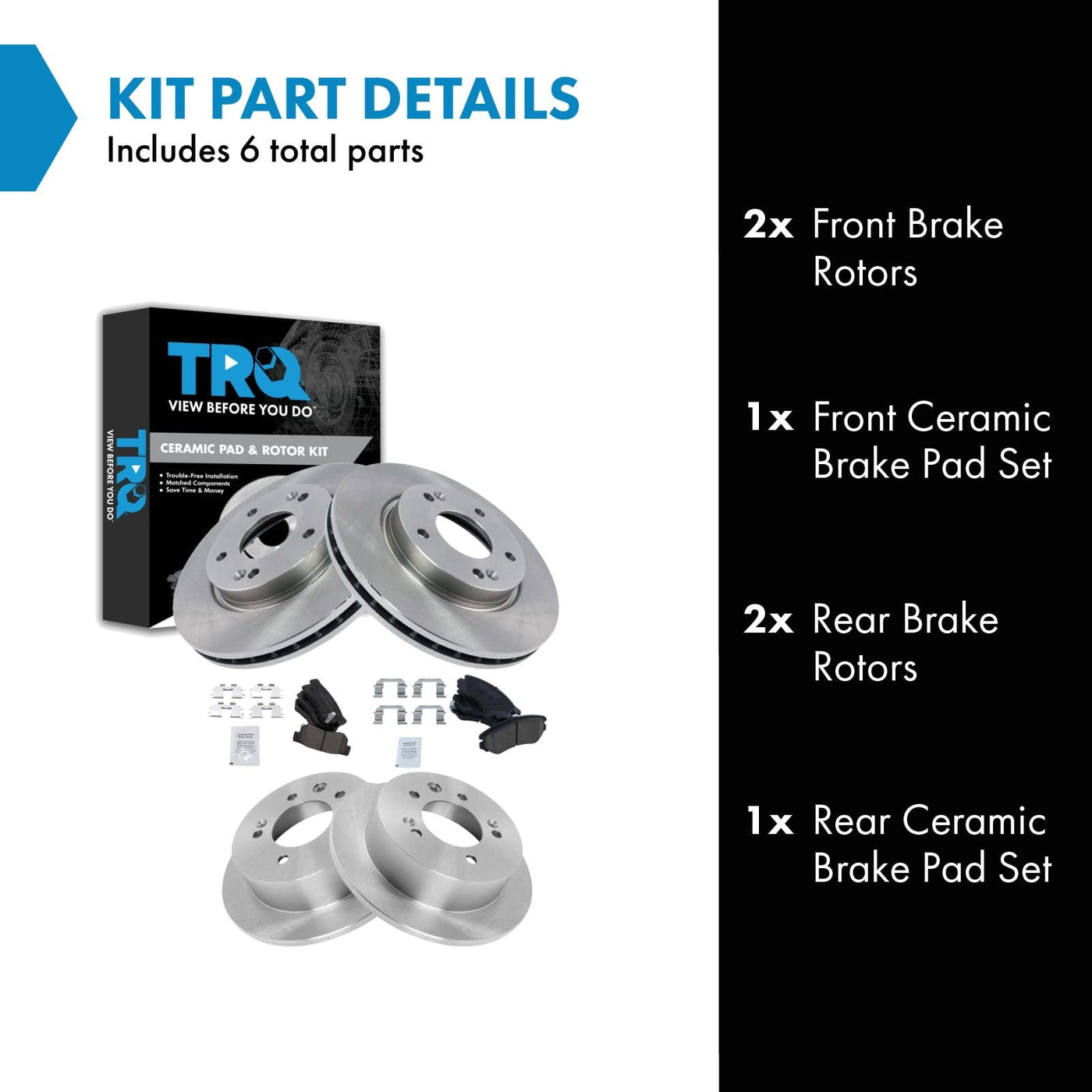 Trq Front And Rear Brake Pad & Rotor Kit Brake Pads Brake Rotor Ceramic Compatible With 2007-2010 Hyundai Elantra