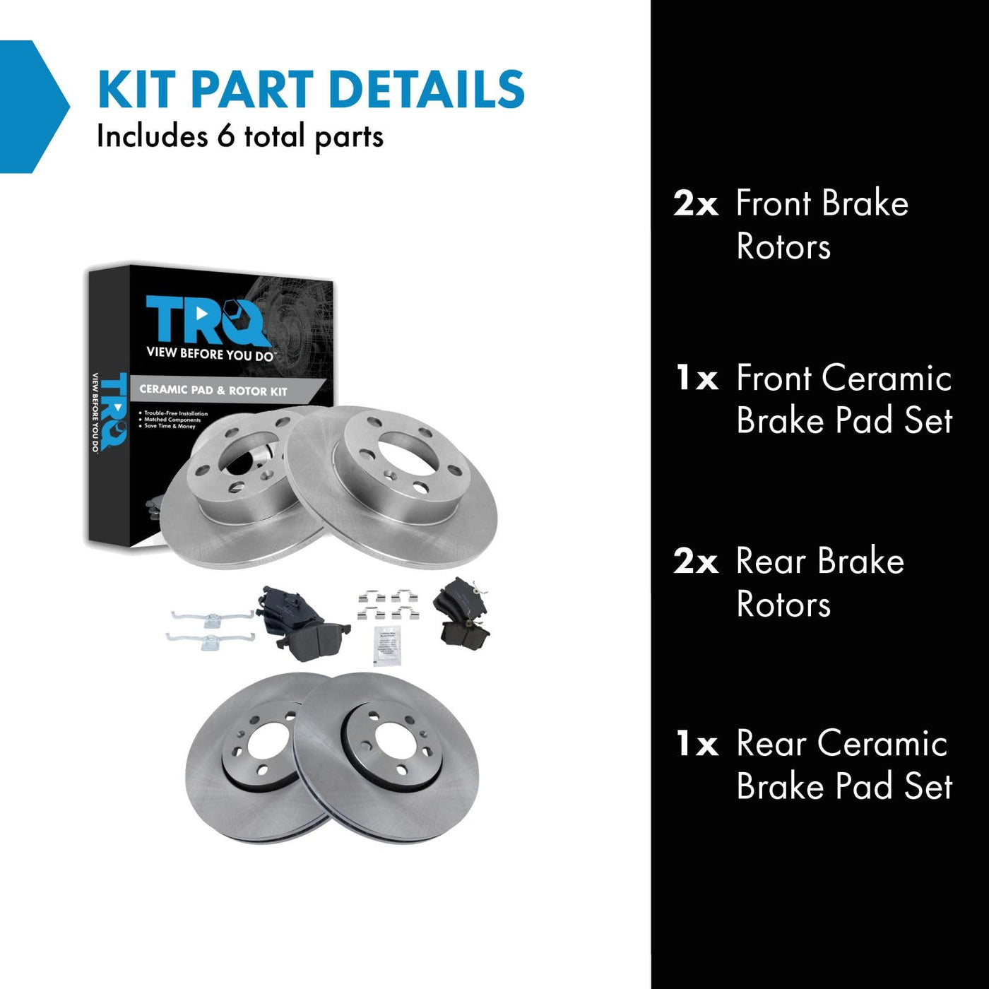 Trq Front And Rear Brake Pad & Rotor Kit Brake Pads Brake Rotor Ceramic Compatible With 2007-2010 Volkswagen Beetle
