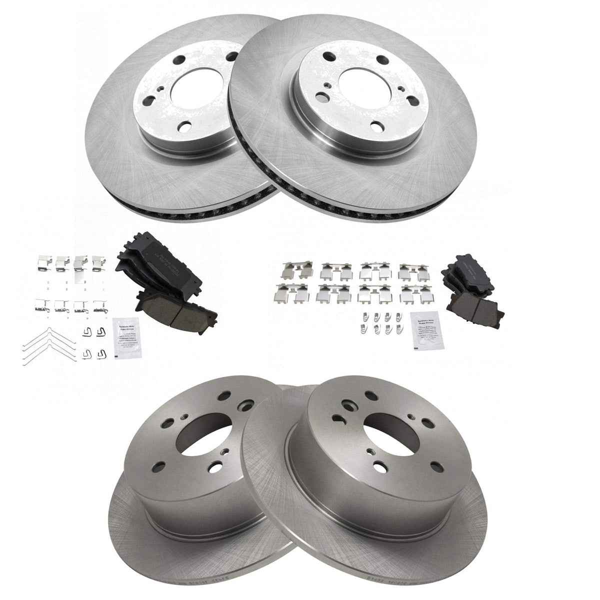Ceramic Brake Pad & Rotor KitKit Includes(1) Front Ceramic Brake Pad Set(1) Rear Ceramic Brake Pad Set(2) Front Brake Rotors(2) Rear Brake RotorsFitmentCompatible with: 2008-11 Toyota Camry Front & RearCompatible with: 2007 Toyota Camry Japan Built Models 1st VIN Digit J Front & RearCompatible with: 2007-12 Lexus ES350 Front & RearCompatible with: 2008-12 Toyota Avalon Front & RearProduct AttributesRear Brake Rotor Diameter: 11.06 in. (281mm)Front Brake Rotor Diameter: 11.65 in. (296mm)Wheel Lug Count: 5 LugBrake Pad Friction Material: CeramicBrake Pad Bonding Type: Premium PosiRear Brake Rotor Venting Type: SolidFront Brake Rotor Venting Type: VentedProduct Features Positive Molded - Less dust resulting in clean wheels G3000 Casting Alloy - Reduced noise and improved wear resistance Application Specific Design - Extended service life, no modificationsItem DetailsTRQ brake kits are designed to restore your brake system to like-new performance. TRQ brake pads are positive molded, thermal scorched, chamfered, and utilize a multi-layer shim for enhanced performance and service life. TRQ rotors have a non-directional finish that reduces the break-in period for new rotors as well as reducing vibrations throughout the rotors lifecycle. All products are fit and road-tested in our Massachusetts R&D facility to ensure we deliver on our promise of Trusted Reliable Quality.Reference NumbersAdvance Auto Parts: 40551128501, N1000301784BRC, YH145713C, YH145713PAimco: 31433, 31434Autoxtra: AX900340AutoZone: 44582, 44582DG, 44582DL, DL44582Bendix: PRT5712, PRT5713, PRT6155Bosch: 50011459, 50011486BrakeBest: 50011459, 50011486, 980470, 980470FZN, 980470R, 980470RGSCasting Numbers: 326282Centric Parts: 120.44146, 120.44146CRY, 121.44146, 126.44146CSL, 126.44146CSR, 126.44146SL, 126.44146SR, 127.44146CL, 127.44146CR, 127.44146L, 127.44146R, 128.44146CL, 128.44146CR, 128.44146L, 128.44146R, 227.44146L, 227.44146R, 320.44146, 321.44146Dura Corp: BR31434, BR900340, BR90034002DuraGo: 900340, BR900340, BR90034002, BR900342Dynamic Friction Company: 604-76080General Motors: 19184294, 19205637Hollander: 533-50153Lexus: 446506100, 446507010, 446533440, 446533450, 446533470, 446533471, 446606090, 446633160, 446633180, 446633200, 446642060Monroe Brakes: BD126407NAPA BRAKES: SDK6253Newtek Automotive USA: 31434Omnicraft: QBRR155, QBRR611Parts Master: 900340Pontiac: 19184917PowerStop: JBR1127EVCPromax: 14-31434, 20-31434Qualis: 44582Raybestos Brakes: 980467, 980467FZN, 980467P, 980467R, 980470, 980470FZN, 980470P, 980470R, 980781, 980781FZN, 980781P, 980781R, 980973, 980973FZN, 980973P, 980973R, EHT1212H, EHT1222H, MGD1212CH, MGD1222CH, SGD1212C, SGD1222CToyota: 1446633210, 4351202250, 4351206090, 4351233130, 4351242050, 446506070, 446506100, 446507010, 446507020, 446533450, 446602220, 446606060, 446606090, 446606200, 446633160, 446633180, 446642060TruStar: 479615TRW: 4828UAP: 31434Ultra Brake: TO-6000WABCO - Archived: PS900340Wagner Brake: 31434, BD126407, BD126407EWagner: BD126407, BD126489Winhere: 6621436