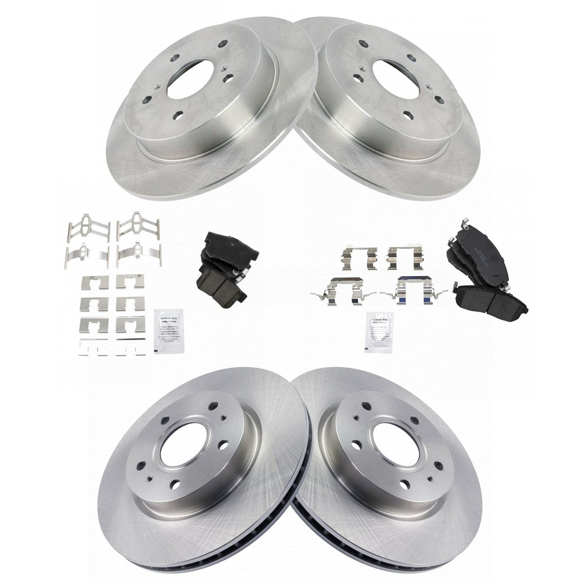 Ceramic Brake Pad & Rotor KitKit Includes(1) Front Ceramic Brake Pad Set(1) Rear Ceramic Brake Pad Set(2) Front Brake Rotors(2) Rear Brake RotorsFitmentCompatible with: 2007-13 Suzuki SX4 Front & RearProduct AttributesRear Brake Rotor Diameter: 10.94 in. (278mm)Front Brake Rotor Diameter: 11.02 in. (280mm)Wheel Lug Count: 5 LugBrake Pad Friction Material: CeramicBrake Pad Bonding Type: Premium PosiRear Brake Rotor Venting Type: SolidFront Brake Rotor Venting Type: VentedProduct Features Positive Molded - Less dust resulting in clean wheels G3000 Casting Alloy - Reduced noise and improved wear resistance Application Specific Design - Extended service life, no modificationsItem DetailsTRQ brake kits are designed to restore your brake system to like-new performance. TRQ brake pads are positive molded, thermal scorched, chamfered, and utilize a multi-layer shim for enhanced performance and service life. TRQ rotors have a non-directional finish that reduces the break-in period for new rotors as well as reducing vibrations throughout the rotors lifecycle. All products are fit and road-tested in our Massachusetts R&D facility to ensure we deliver on our promise of Trusted Reliable Quality.Reference NumbersAcura: 43022S5AJ00, 43022S84A50, 43022SL5000, 43022SV4A20, 43022SV4G22, 43022SY8A00, 43022SY8A01, 43022TR0A00, 43022TR0A01Aimco: 10131498, 31498, 31499Bendix: PRT5942, PRT6088DuraGo: BR900640, BR900642Hollander: 530-50209Honda: 43022S2A000, 43022S5AJ00, 43022S6D010, 43022S6DE50, 43022S84A50, 43022SL5000, 43022SM4G00, 43022SV4A00, 43022SV4A20, 43022SV4A21, 43022SV4A22, 43022SV4A23, 43022SV4G20, 43022SV4G21, 43022SV4G22, 43022SY8A00, 43022SY8A01, 43022TR0A00, 43022TR0A01INFINITI: 410602Y091, 410602Y990, 410605Y790, 41060AM890, 41060AM891, 41060AM892, D10602Y991, D106M2Y991Nissan: 410602Y090, 410602Y091, 410605Y790, 410608J090, 41060AM890, 41060AU091, 41060ZB590, D10601FC0A, D10609AJ0A, D1060AC20A, D1060EM30A, D1060EM30C, D1060JN00A, D1060JN01A, D1061AC20A, D1061JA00A, D1061ZX60ARaybestos Brakes: 980610, 980610FZN, 980610P, 980610R, 980611, 980611FZN, 980611P, 980611R, EHT537H, EHT815AH, EHT815H, MGD537CH, MGD815CH, SGD537C, SGD815CRenault: 4811152110K1Suzuki: 43022SM4G00, 55611-80J00, 55800-57L52, 5580057L00, 5580057L50, 5580080J00, 5580080J01, 5580080J02, 5581080J01Wagner: BD180014, BD180050