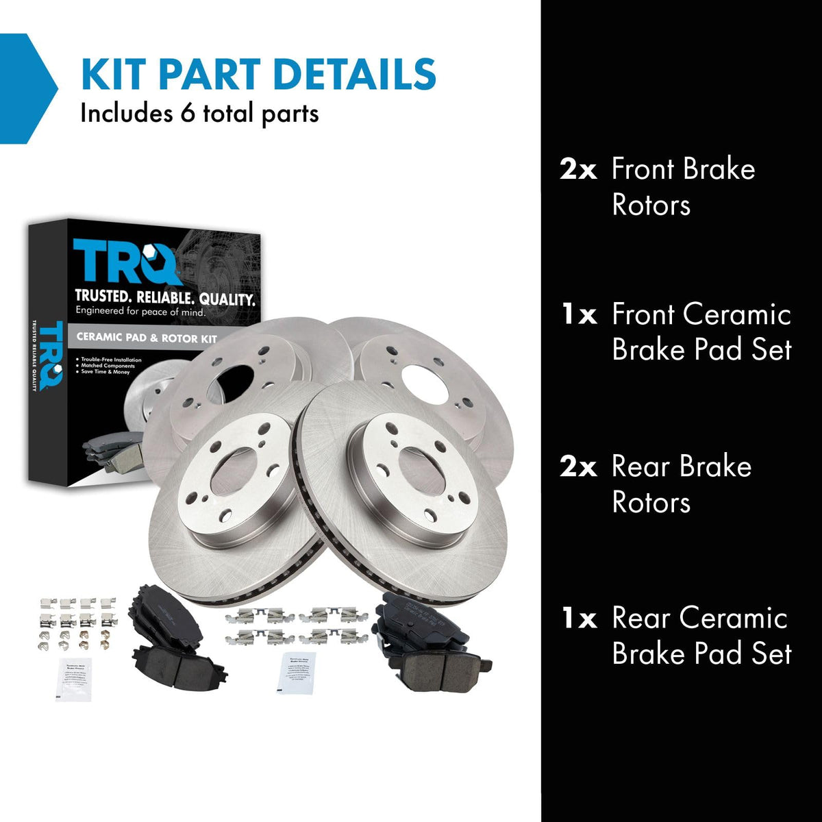 Trq Front And Rear Brake Pad & Rotor Kit Brake Pads Brake Rotor Ceramic Compatible With 2008-2015 Scion Xb