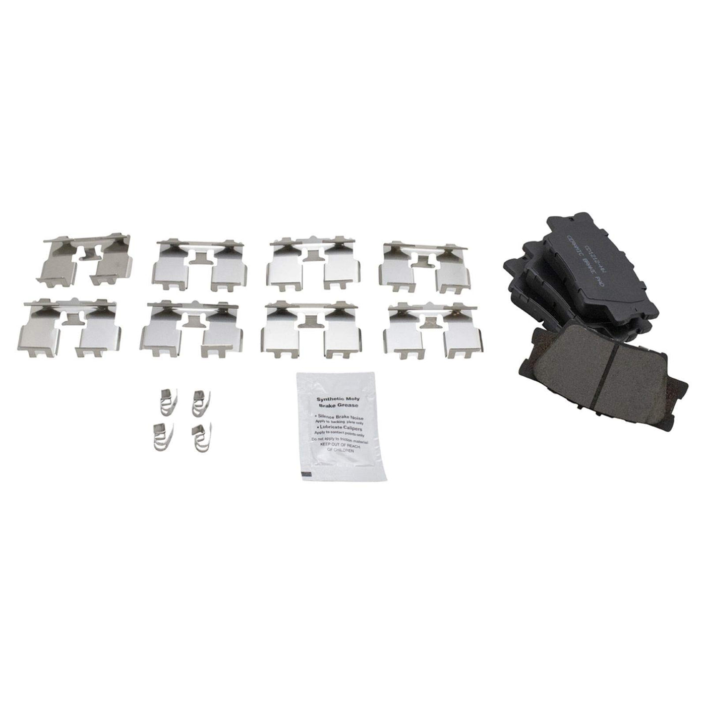 Ceramic Brake Pad & Rotor KitKit Includes(1) Front Ceramic Brake Pad Set(1) Rear Ceramic Brake Pad Set(2) Front Brake Rotors(2) Rear Brake RotorsFitmentCompatible with: 2013-17 Toyota Rav4 LE Front & RearCompatible with: 2009-12 Toyota Rav4 L4 2.5L Front & Rear without 3rd Row SeatingCompatible with: 2018 Toyota Rav4 LE excluding Japan Built Models Front & RearCompatible with: 2006-08 Toyota Rav4 L4 2.4L Front & Rear without 3rd Row SeatingCompatible with: 2010-12 Lexus HS250h Front & RearProduct AttributesFront Brake Rotor Diameter: 10.83 in. (275mm)Rear Brake Rotor Diameter: 11.06 in. (281mm)Wheel Lug Count: 5 LugBrake Pad Friction Material: CeramicBrake Pad Bonding Type: Premium PosiRear Brake Rotor Venting Type: SolidFront Brake Rotor Venting Type: VentedProduct Features Positive Molded - Less dust resulting in clean wheels G3000 Casting Alloy - Reduced noise and improved wear resistance Application Specific Design - Extended service life, no modificationsItem DetailsTRQ brake kits are designed to restore your brake system to like-new performance. TRQ brake pads are positive molded, thermal scorched, chamfered, and utilize a multi-layer shim for enhanced performance and service life. TRQ rotors have a non-directional finish that reduces the break-in period for new rotors as well as reducing vibrations throughout the rotors lifecycle. All products are fit and road-tested in our Massachusetts R&D facility to ensure we deliver on our promise of Trusted Reliable Quality.Reference NumbersAimco: 31440, 31443Bendix: PRT5886, PRT5922DuraGo: BR900344, BR900360Hollander: 530-50139, 533-50122Lexus: 446542160, 446606090, 446633160, 446633180, 446633200, 446642060Pontiac: 19184912, 19184917Raybestos Brakes: 980477, 980477FZN, 980477P, 980477R, 980483, 980483FZN, 980483P, 980483R, EHT1210H, EHT1212H, MGD1210CH, MGD1212CH, SGD1212CScion: 446502220, 446542160, 446542200Toyota: 04465-AZ114, 044650R010, 1446633210, 446502220, 446502240, 446502410, 446542160, 446542200, 446602220, 446606060, 446606090, 446606200, 446633160, 446633180, 446642060Wagner: BD126404, BD126405