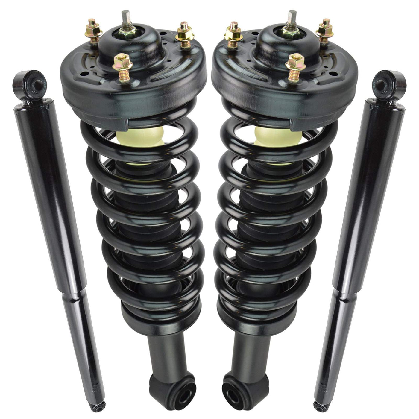 4 Piece Complete Strut Assembly & Shock Absorber Kitkit Includes(2) Front Strut & Spring Assemblies(2) Rear Shock Absorbersfitmentcompatible With: 2009-13 Ford F150 Truck Rear Wheel Drive Front & Rearproduct Attributesquantity: 4 Pieceproduct Features Loaded Struts: Pre-Assembled Application Specific Design Application Specific Design: No Modifications Necessary Matched Pair: Improved Comfort And Extended Service Life Restored Performance: Reduced Body Sway And Vibrationitem Detailstrq Fully Loaded Shocks And Struts Are Manufactured Using Premium Raw Materials And Calibrated To Restore Original Ride Comfort. Trq Shocks Are Fully Loaded Featuring A Pre-Loaded Bearing Plate, Upper And Lower Spring Isolator, Upper Spring Seat, Coil Spring, Boot Kit, And Premium Strut. Trq Recommends Replacing Your Shocks Or Struts In Pairs To Ensure Even Wear Of Components And Improved Ride Comfort. All Products Are Fit And Road-Tested In Our Massachusetts R&D Facility To Ensure We Deliver On Our Promise Of Trusted Reliable Quality.Reference Numberskyb: 344415, Sr4172Monroe Shocks & Struts: 171140, 181140, 911262Motorcraft: Daunity Automotive: 11304, 252110