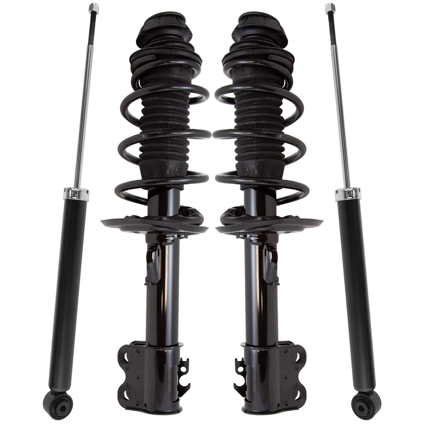 4 Piece Complete Strut Assembly & Shock Absorber Kitkit Includes(2) Front Strut & Spring Assemblies(2) Rear Shock Absorbersfitmentcompatible With: 2013-15 Toyota Yaris Front & Rearcompatible With: 2012 Toyota Yaris L Front & Rearcompatible With: 2012 Toyota Yaris Se Front & Rearcompatible With: 2012 Toyota Yaris Le Front & Rearproduct Attributesquantity: 4 Pieceproduct Features Loaded Struts: Pre-Assembled Application Specific Design Application Specific Design: No Modifications Necessary Matched Pair: Improved Comfort And Extended Service Life Restored Performance: Reduced Body Sway And Vibrationitem Detailstrq Fully Loaded Shocks And Struts Are Manufactured Using Premium Raw Materials And Calibrated To Restore Original Ride Comfort. Trq Shocks Are Fully Loaded Featuring A Pre-Loaded Bearing Plate, Upper And Lower Spring Isolator, Upper Spring Seat, Coil Spring, Boot Kit, And Premium Strut. Trq Recommends Replacing Your Shocks Or Struts In Pairs To Ensure Even Wear Of Components And Improved Ride Comfort. All Products Are Fit And Road-Tested In Our Massachusetts R&D Facility To Ensure We Deliver On Our Promise Of Trusted Reliable Quality.Reference Numbersautopart International: 2701-412063, Kyb343442Diy Solutions: Sho01797, Sho01798Gabriel: G51783, G53783Kyb: 343442, 348069, Sr4413, Sr4414Mando: Mss020020Monroe Shocks & Struts: 372288, 372289, 5624Omniparts: 30060070Osc: S343442Sensen: 3212-0276Toyota: 48530-80340, 48530-80347, 4853052G20, 4853080324, 4853080340, 4853080347, 4853080351, 4853080554Transit: 78-5624Unity Automotive: 2-254130-001, 254130, 413071254130-001Worldpac: L4000298821Kyb