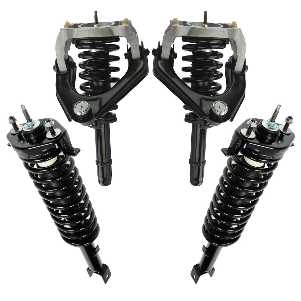 • Q: How many struts and springs are included in this kit? A: The kit includes a total of four pieces: two front strut and spring assemblies along with two rear strut and spring assemblies.