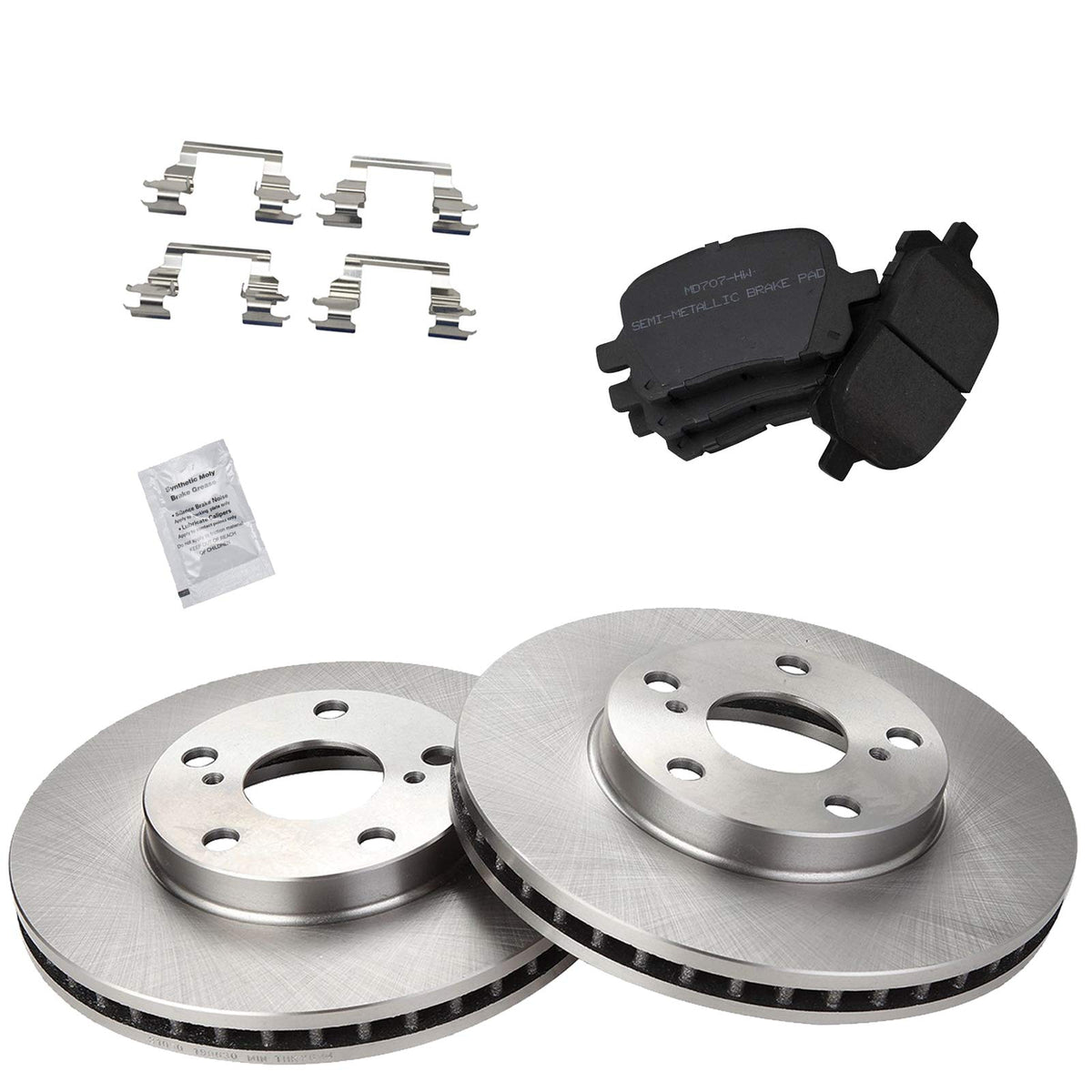 Semi-Metallic Brake Pad & Rotor KitKit Includes(1) Front Semi-Metallic Brake Pad Set(2) Front Brake RotorsFitmentCompatible with: 1997-01 Toyota Camry V6 3.0L FrontCompatible with: 1998-04 Toyota Avalon FrontCompatible with: 1997-01 Lexus ES300 FrontCompatible with: 1999-03 Toyota Solara FrontProduct AttributesFront Brake Rotor Diameter: 10.83 in. (275mm)Wheel Lug Count: 5 LugBrake Pad Bonding Type: Premium PosiBrake Pad Friction Material: Semi-MetallicFront Brake Rotor Venting Type: VentedProduct Features Positive Molded - Less dust resulting in clean wheels G3000 Casting Alloy - Reduced noise and improved wear resistance Application Specific Design - Extended service life, no modificationsItem DetailsTRQ brake kits are designed to restore your brake system to like-new performance. TRQ brake pads are positive molded, thermal scorched, chamfered, and utilize a multi-layer shim for enhanced performance and service life. TRQ rotors have a non-directional finish that reduces the break-in period for new rotors as well as reducing vibrations throughout the rotors lifecycle. All products are fit and road-tested in our Massachusetts R&D facility to ensure we deliver on our promise of Trusted Reliable Quality.Reference NumbersAimco: 31050Bendix: PRT1723DuraGo: BR31050Hollander: 530-58456, 530-58498Lexus: 446533120, 446533180, 446533230, 446548010Raybestos Brakes: 96217, 96217FZN, 96217P, 96217R, 96754R, EHT707HToyota: 446533120, 446533121Wagner: BD125223, BD126580