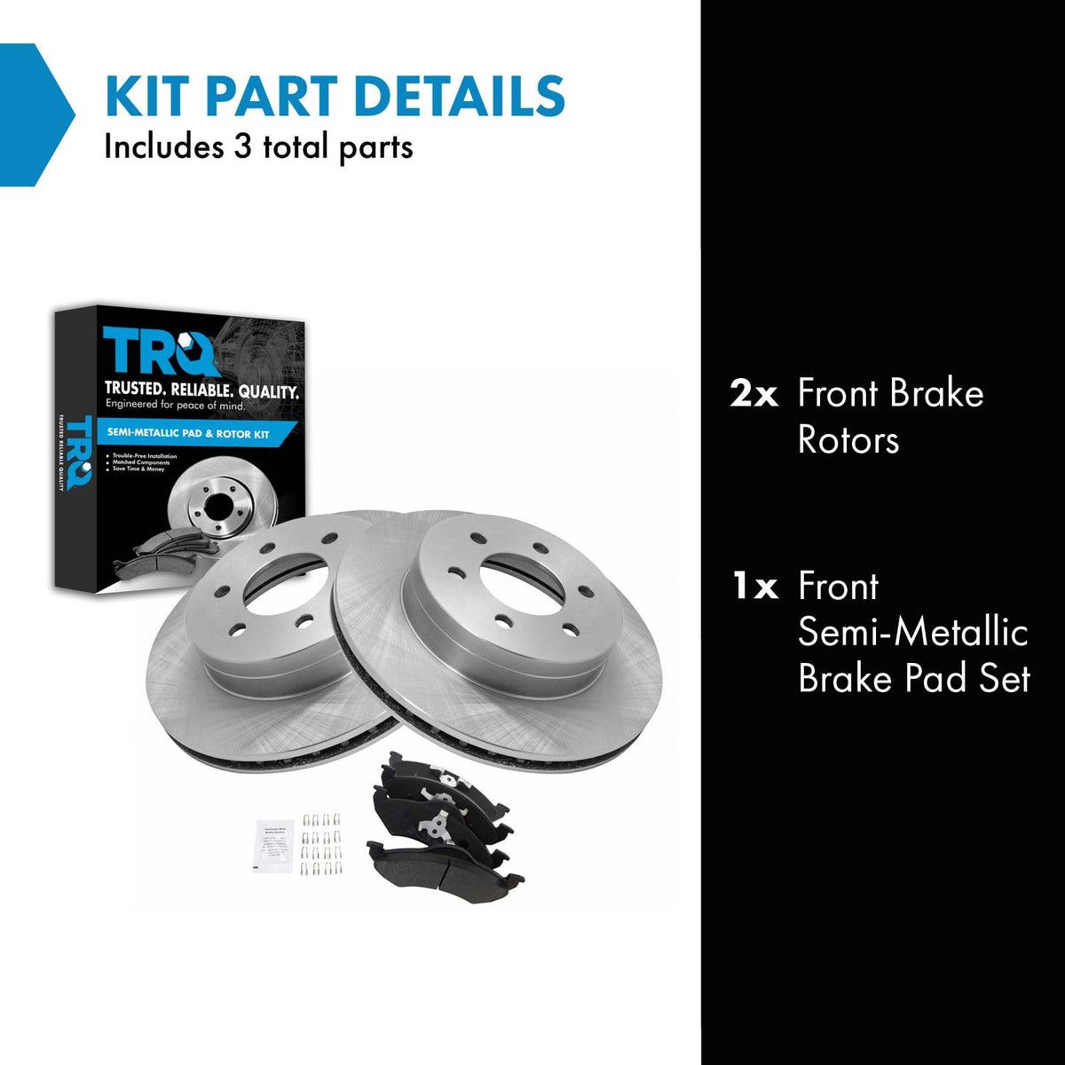 Trq Front Brake Pad & Rotor Kit Brake Pads Brake Rotor Semi-Metallic Compatible With 2000-2002 Dodge Dakota Durango