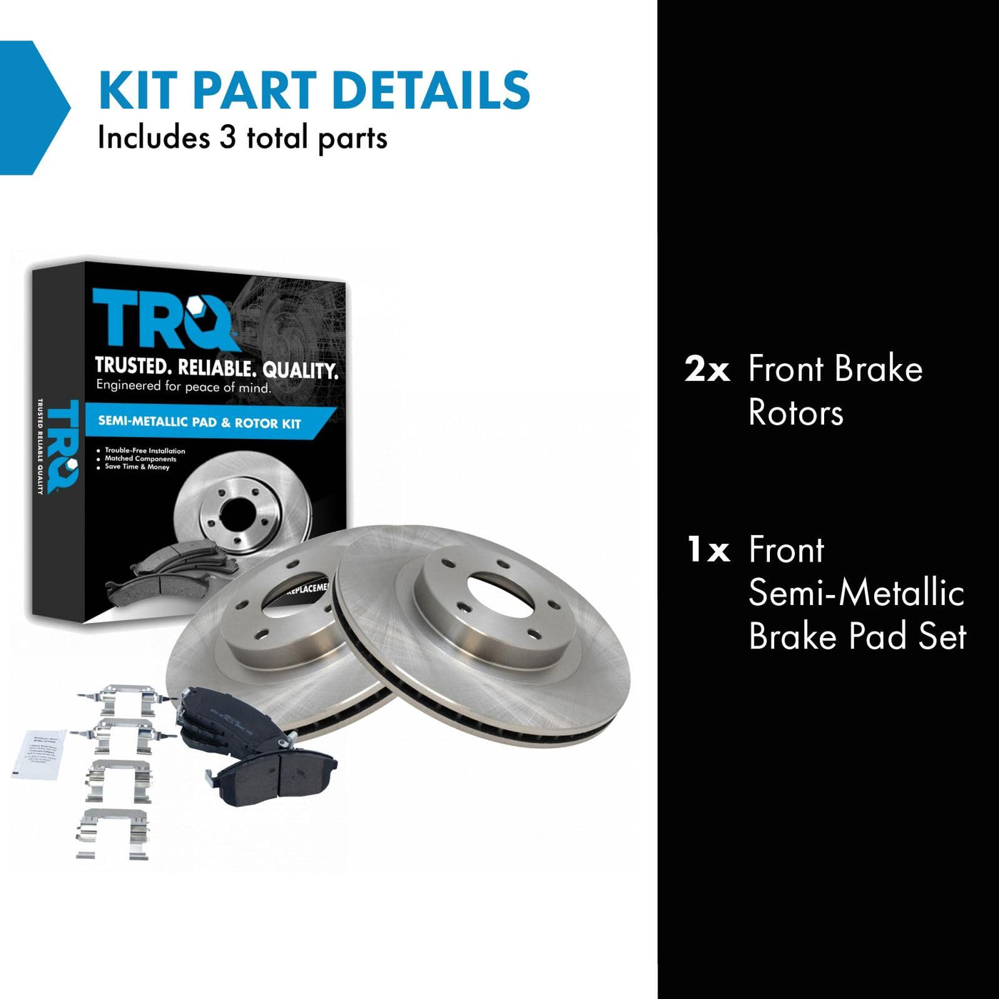Trq Front Brake Pad & Rotor Kit Brake Pads Brake Rotor Semi-Metallic Compatible With 2002-2004 Infiniti I35 2002-2006 Nissan Alt