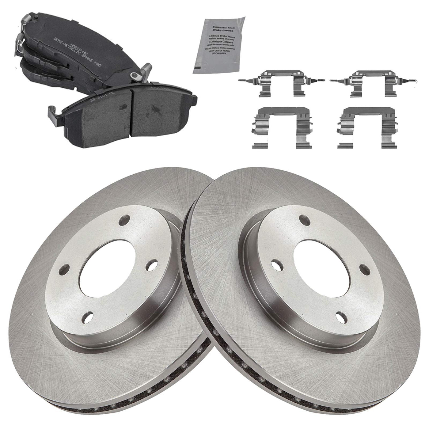 Trq Front Brake Pad & Rotor Kit Brake Pads Brake Rotor Semi-Metallic Compatible With 2009-2014 Nissan Cube 2007-2012 Sentra Vers