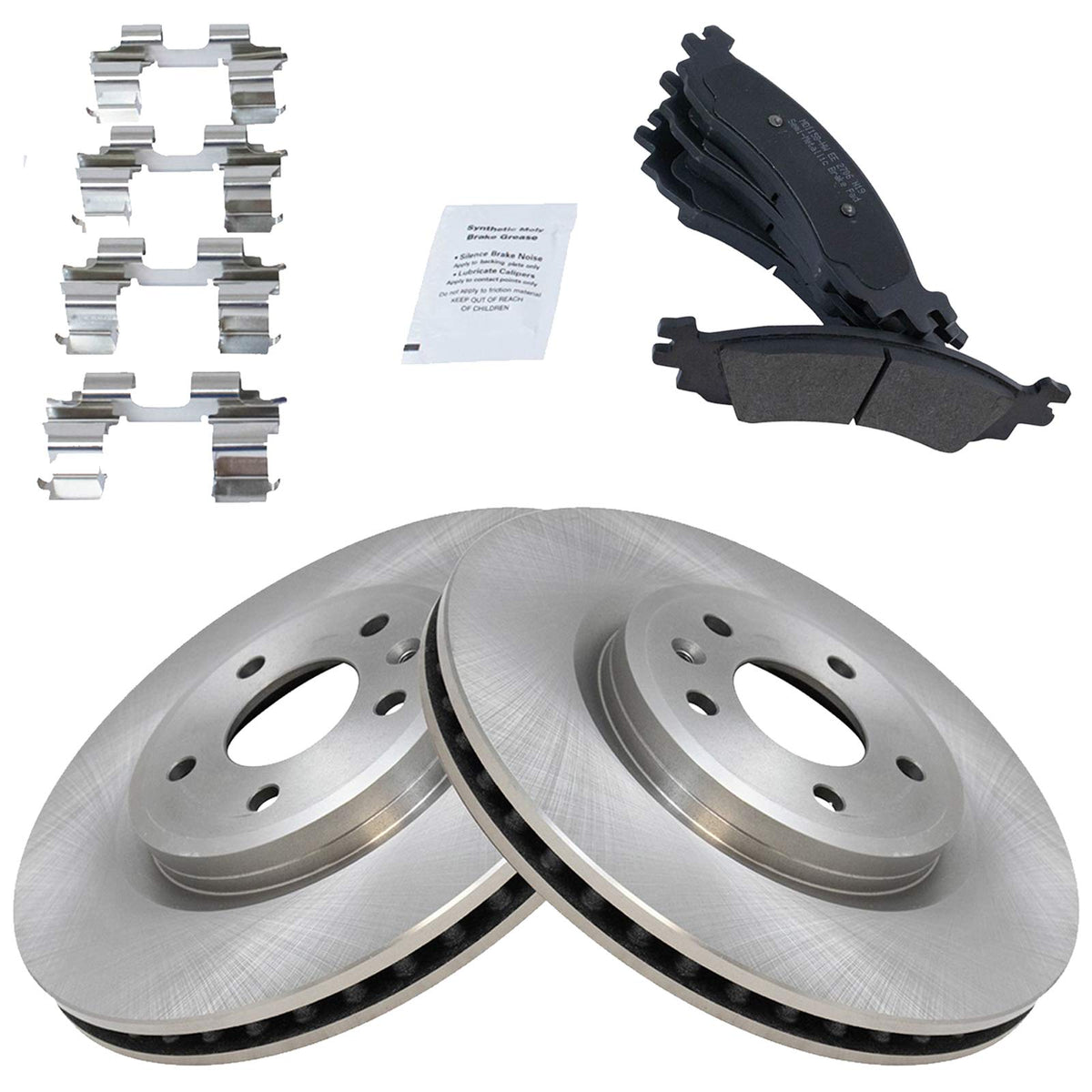 Semi-Metallic Brake Pad & Rotor KitKit Includes(1) Front Semi-Metallic Brake Pad Set(2) Front Brake RotorsFitmentCompatible with: 2010-12 Ford Taurus SHO FrontProduct AttributesFront Brake Rotor Diameter: 12.80 in. (325mm)Wheel Lug Count: 5 LugBrake Pad Bonding Type: Premium PosiBrake Pad Friction Material: Semi-MetallicFront Brake Rotor Venting Type: VentedProduct Features Positive Molded - Less dust resulting in clean wheels G3000 Casting Alloy - Reduced noise and improved wear resistance Application Specific Design - Extended service life, no modificationsItem DetailsTRQ brake kits are designed to restore your brake system to like-new performance. TRQ brake pads are positive molded, thermal scorched, chamfered, and utilize a multi-layer shim for enhanced performance and service life. TRQ rotors have a non-directional finish that reduces the break-in period for new rotors as well as reducing vibrations throughout the rotors lifecycle. All products are fit and road-tested in our Massachusetts R&D facility to ensure we deliver on our promise of Trusted Reliable Quality.Reference NumbersAdvance Auto Parts: 270345, G09526SD, N1000393056WBR, YH270345, YH322455, YH322455C, YH322455PAimco: 54166Autopartsource: 492925, 592123Autoxtra: AX900632Bendix: PRT5842, PRT6124Bosch: 20011505, 20011511BrakeBest: 20011505, 20011511, 621261RGS, 680688, 680688FZN, 680688R, 680688RGS, 680758, 680758FZN, 680758PER, 680758R, 680758RGSCentric Parts: 120.61094, 120.61094CRY, 120.61102, 120.61102CRY, 121.61094, 121.61102, 126.61094SL, 126.61094SR, 126.61102CSL, 126.61102CSR, 126.61102SL, 126.61102SR, 127.61094L, 127.61094R, 127.61102L, 127.61102R, 128.61102CL, 128.61102CR, 128.61102L, 128.61102R, 227.61102L, 227.61102R, 320.61094, 320.61102, 321.61102Dura Corp: BR54166, BR54171, BR900632, BR90063202, BR901020DuraGo: 900632, BR900632, BR90063202, BR901020, BR90102002Ford: 6L2Z2001A, 8A8Z1125A, AG1Z1125A, AG1Z2001F, CB5Z1125AHollander: 530-00154, 530-00189Mercury: 6L2Z2001AMotorcraft: NBRR12Newtek Automotive USA: 54166, 54171Parts Master: 901020PowerStop: AR8194EVC, AR85137EVCPromax: 14-54166, 14-54171Raybestos Brakes: 680688, 680688FZN, 680688P, 680688R, 680758, EHT1158H, SP1158PSHUAP: 2901020, 54166, R61102Ultra Brake: 54515WABCO - Archived: PS54166Wagner Brake: BD180285, BD180462, BD180462EWagner: BD180285Winhere: 6621008