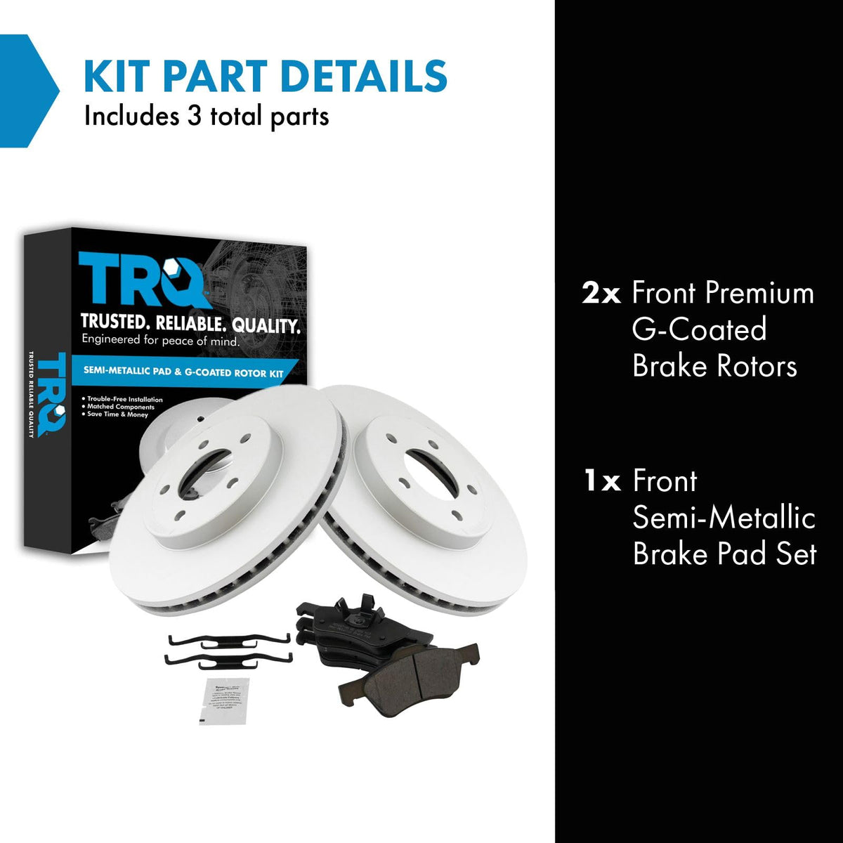 Trq Front Brake Pad & Rotor Kit Brake Pads Brake Rotor Semi-Metallic Premium G-Coated Compatible With 2005-2012 Ford Escape 2005