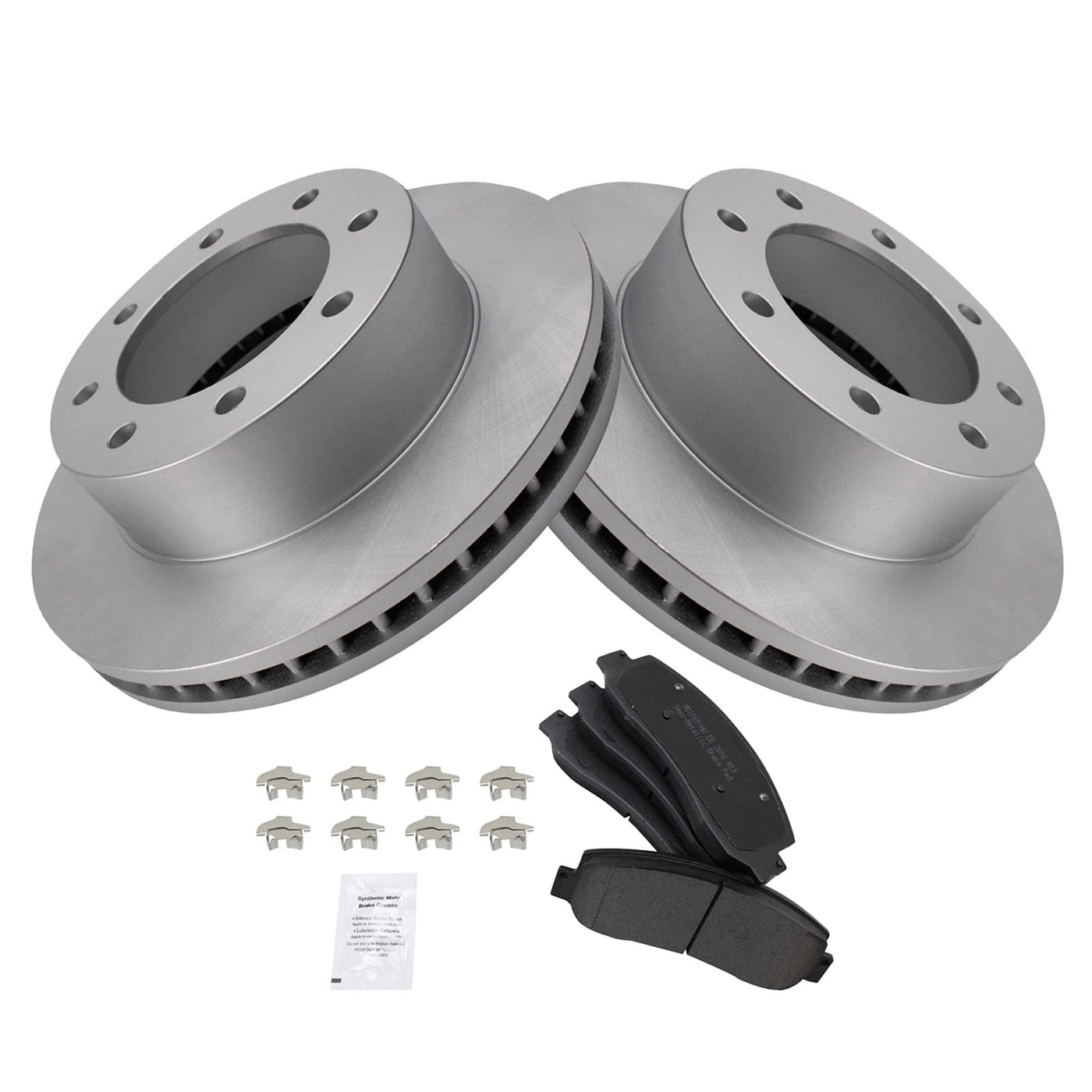Trq Front Brake Pad & Rotor Kit Brake Pads Brake Rotor Semi-Metallic Premium G-Coated Compatible With 2005-2012 Ford F-250 Super