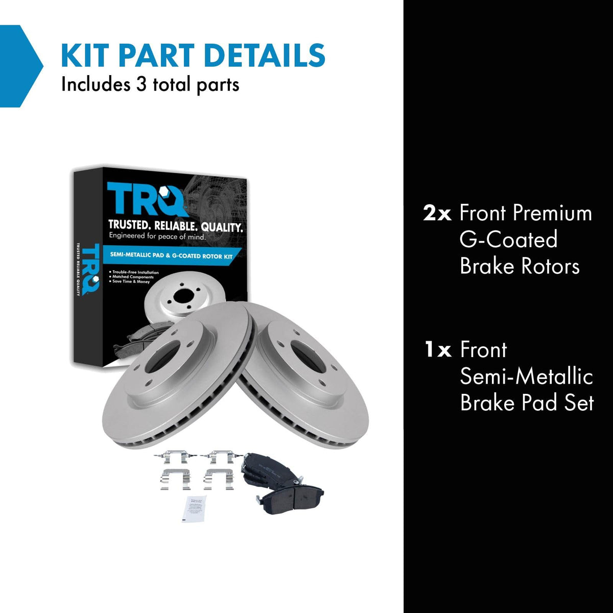 Trq Front Brake Pad & Rotor Kit Brake Pads Brake Rotor Semi-Metallic Premium G-Coated Compatible With 2009-2014 Nissan Cube 2007