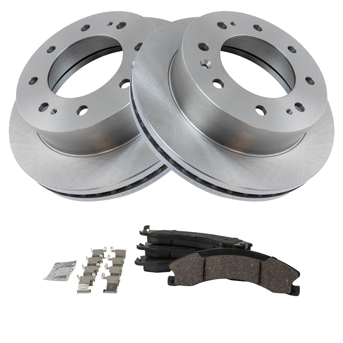 Ceramic Brake Pad & Rotor KitKit Includes(1) Front Ceramic Brake Pad Set(2) Front Brake RotorsFitmentCompatible with: 2016-19 Chevrolet Suburban 3500 HD FrontProduct AttributesBrake Rotor Diameter: 13.98 in. (355mm)Wheel Lug Count: 8 LugBrake Pad Friction Material: CeramicBrake Pad Bonding Type: Premium PosiBrake Rotor Venting Type: VentedProduct Features Positive Molded - Less dust resulting in clean wheels G3000 Casting Alloy - Reduced noise and improved wear resistance Application Specific Design - Extended service life, no modificationsItem DetailsTRQ brake kits are designed to restore your brake system to like-new performance. TRQ brake pads are positive molded, thermal scorched, chamfered, and utilize a multi-layer shim for enhanced performance and service life. TRQ rotors have a non-directional finish that reduces the break-in period for new rotors as well as reducing vibrations throughout the rotors lifecycle. All products are fit and road-tested in our Massachusetts R&D facility to ensure we deliver on our promise of Trusted Reliable Quality.Reference NumbersAimco: 55191Bendix: PRT6074Cadillac: 23270466Chevrolet: 22770745, 22960231, 23270466DuraGo: BR901026GMC: 22770745, 22960231, 23270466Nissan: D10601PA0A, D1060EZ00A, D40601PA0A, D40601PA1ARaybestos Brakes: 580875, 580875FZN, 580875P, 580875PER, 580875RWagner Brake: OEX1565Wagner: BD180441