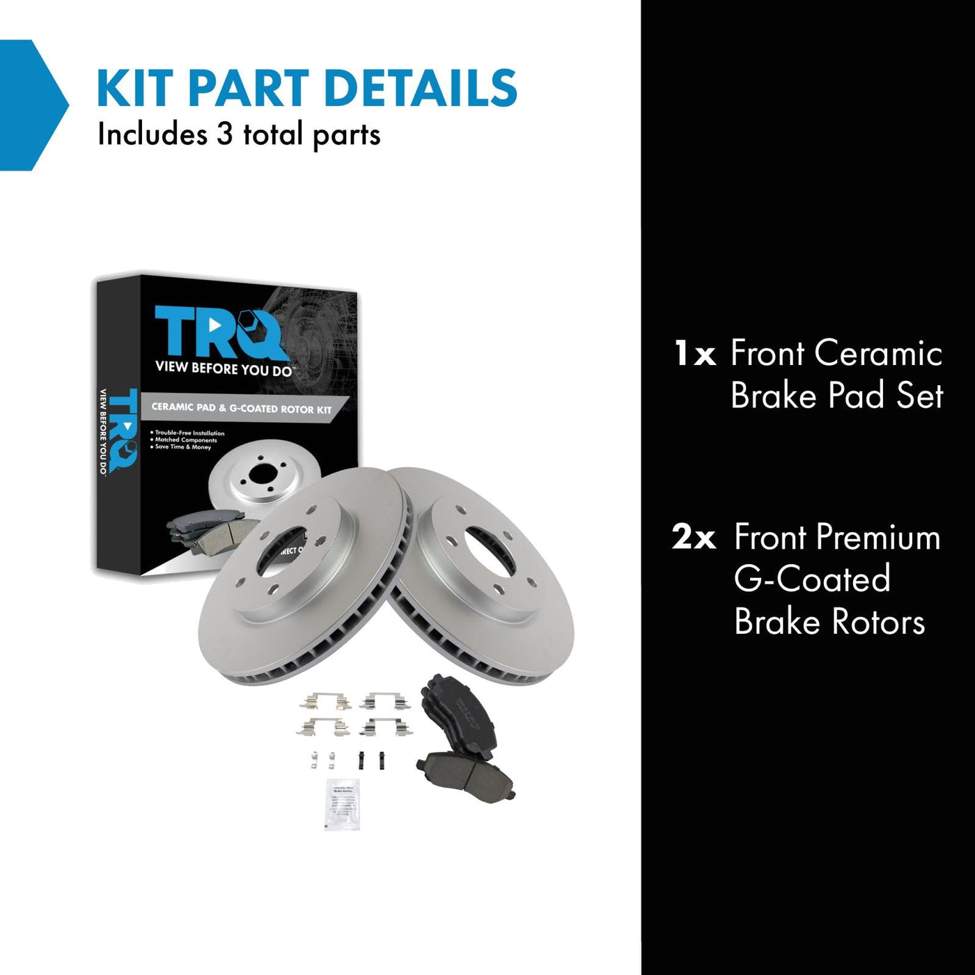 Trq Front Brake Pad & Rotor Kit Ceramic Premium G-Coated Compatible With 2007-2012 Dodge Caliber 2008-2017 Mitsubishi Lancer